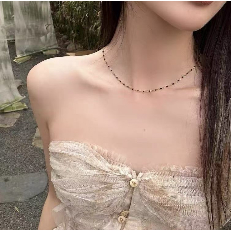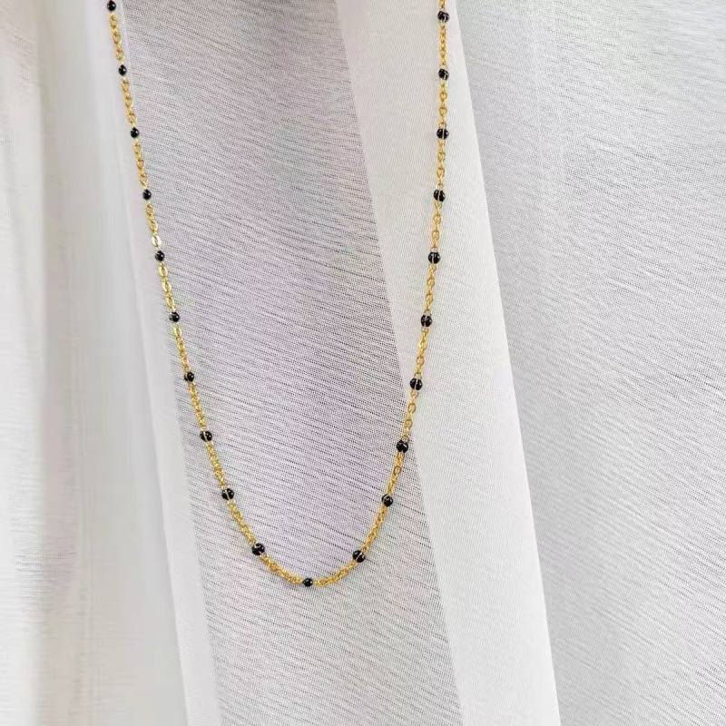 杨采钰同款黑色豆豆18K金项链钛钢小黑珠锁骨链跨境配饰颈链