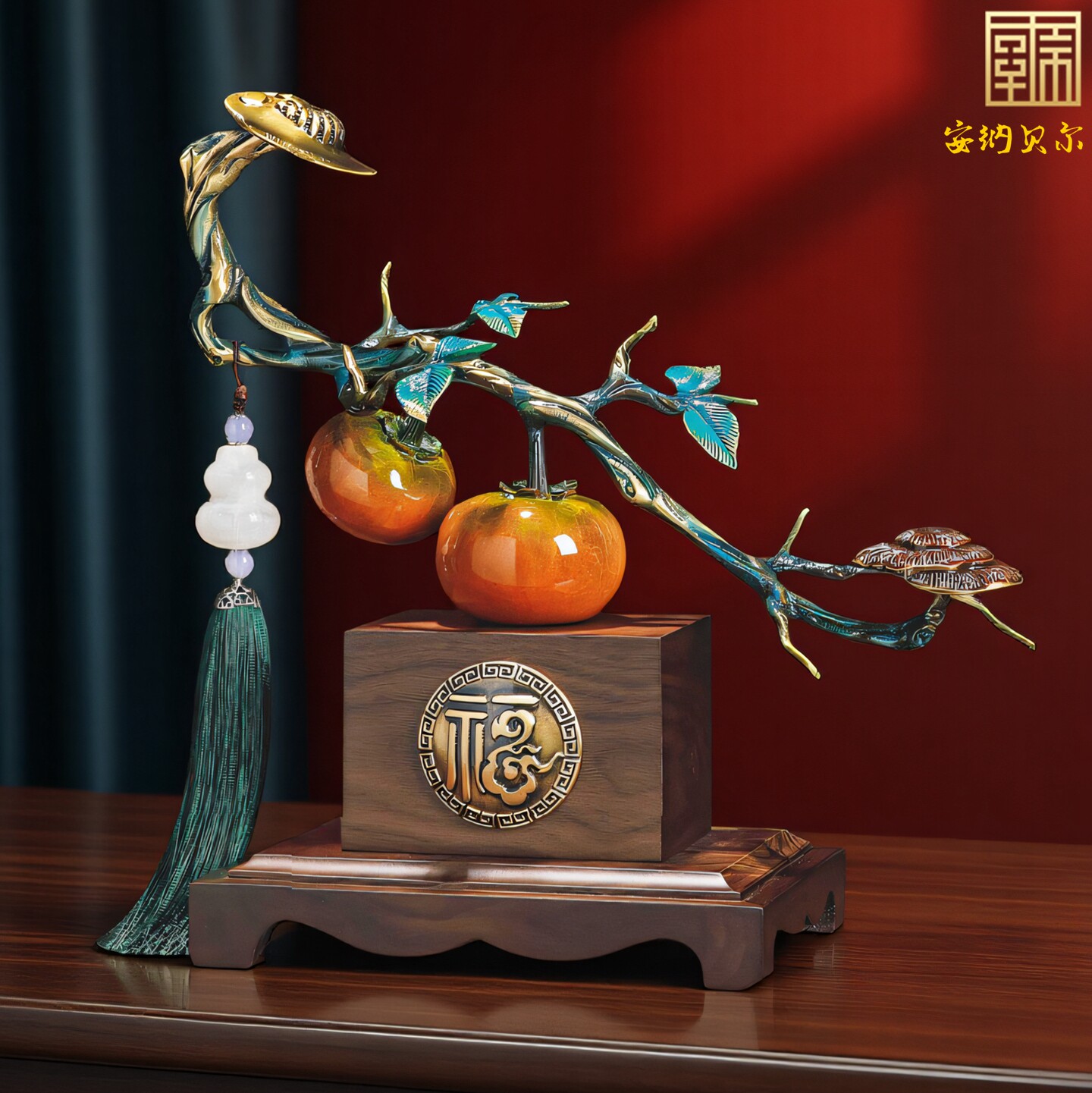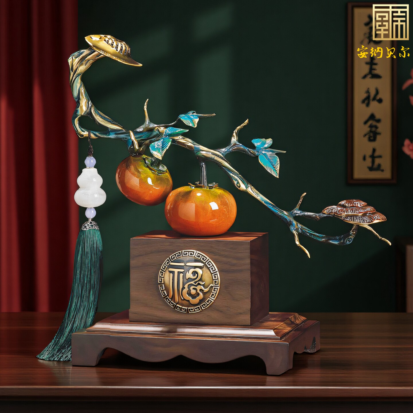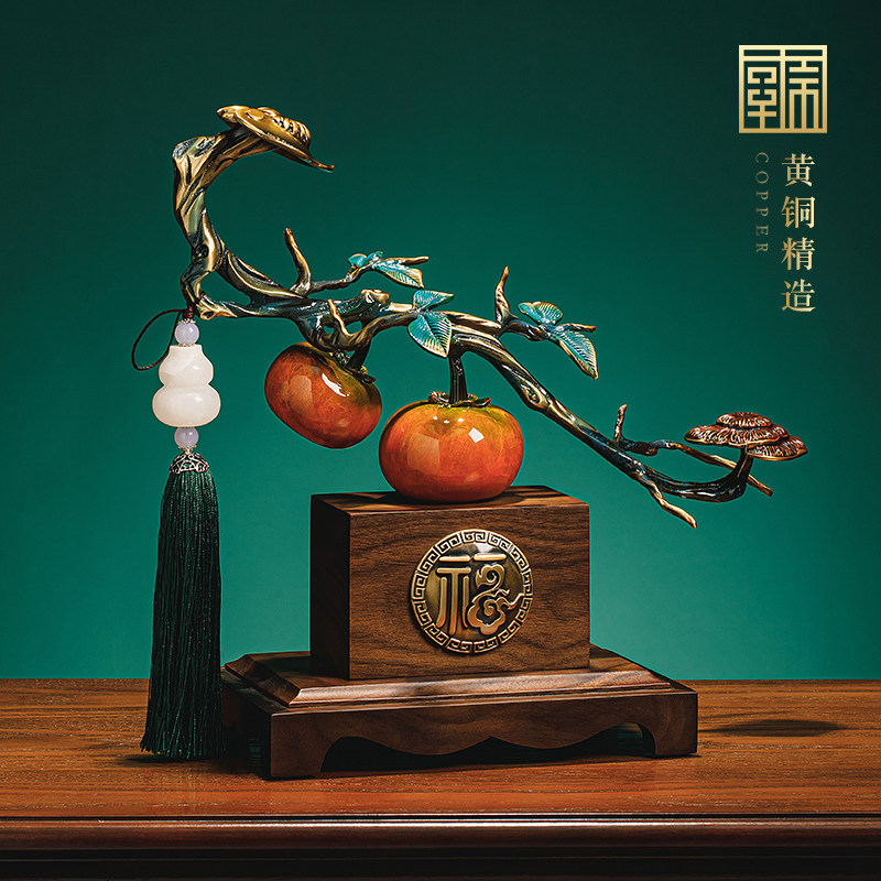 柿柿如意摆件事事如意柿子工艺品领导高档办公室装饰开业乔迁礼物