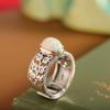 本命年925纯银镶嵌蛋面欧泊宽戒指时尚女款百搭开口指环礼物