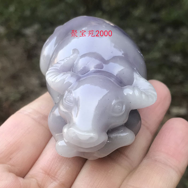 扭转乾坤仿玉石招财牛把玩玉文玩观赏石新疆和田玉烟紫色牛手把件