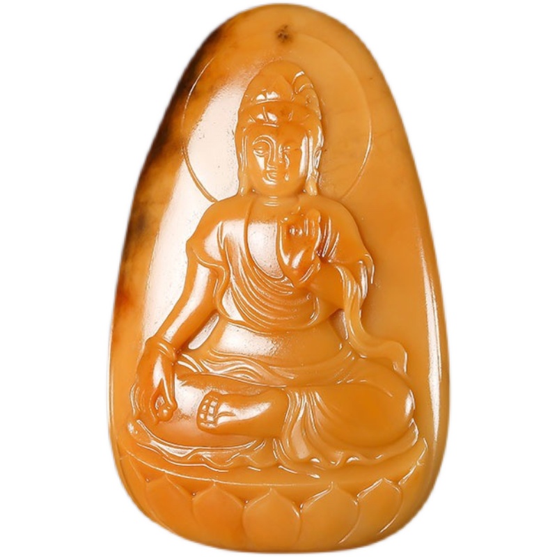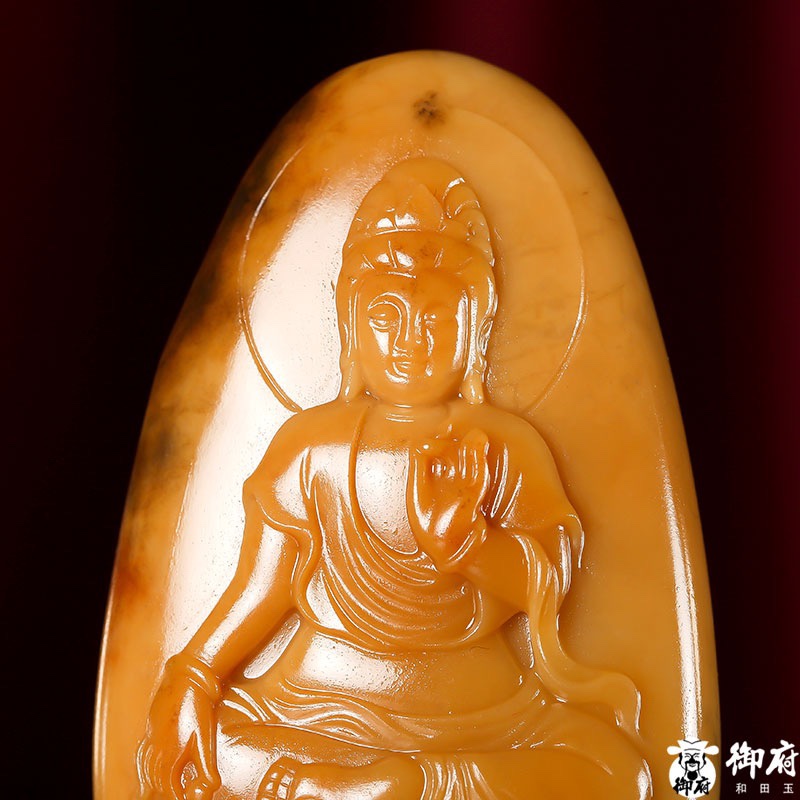 新疆和田黄沁籽玉挂件观音39.5克