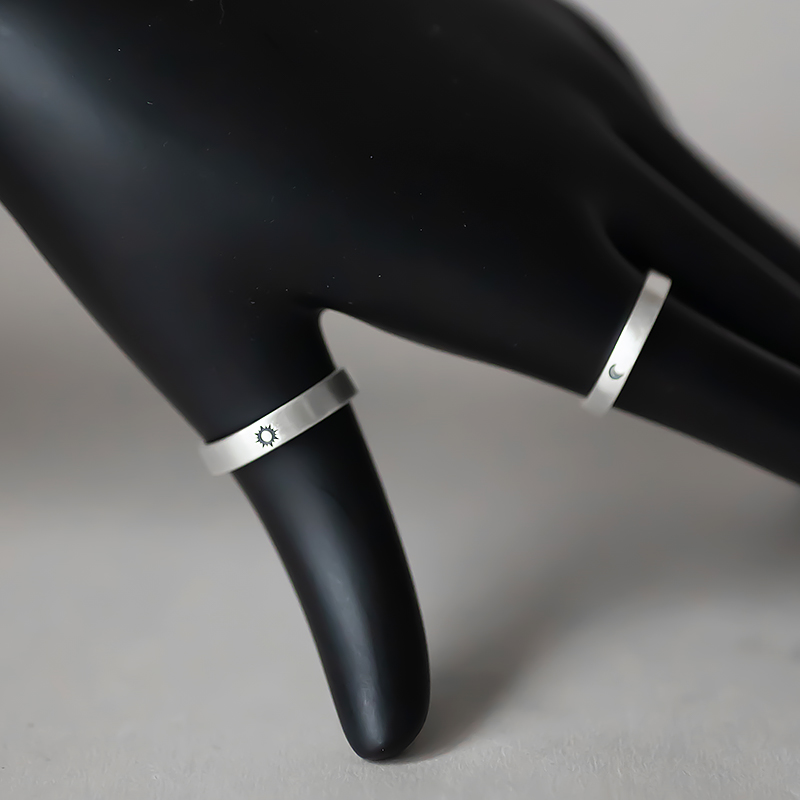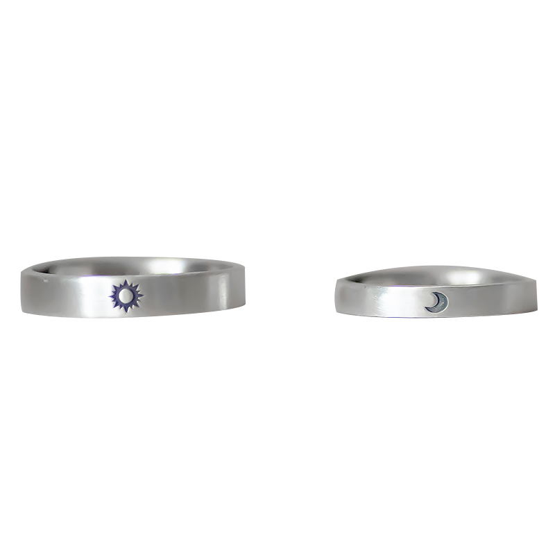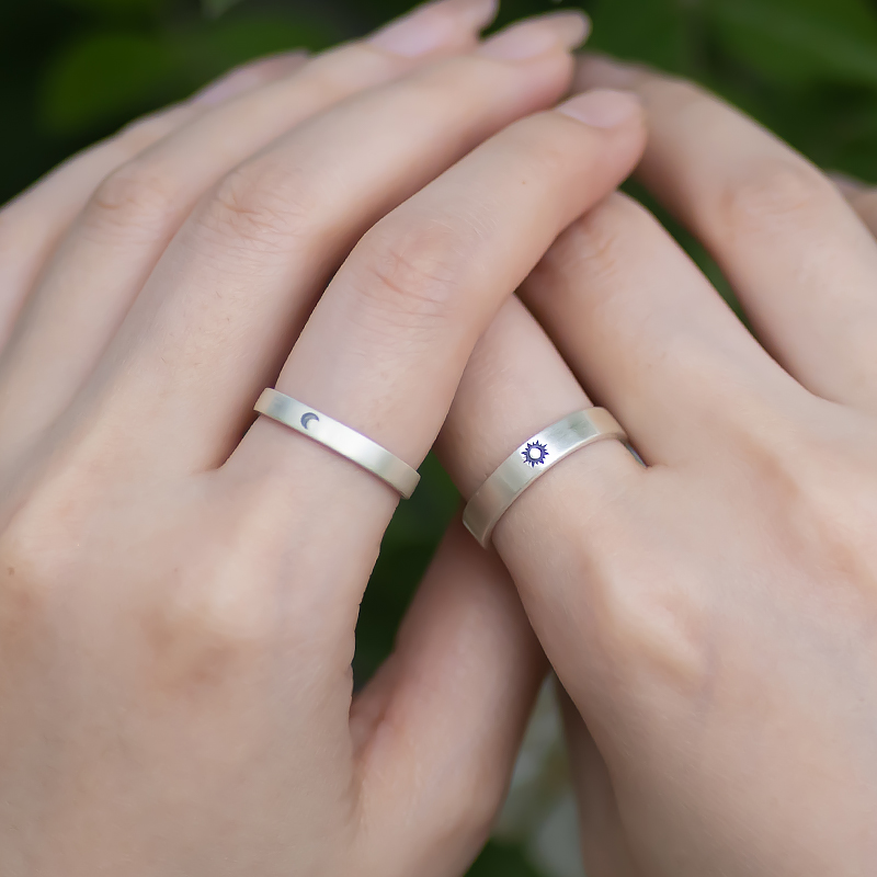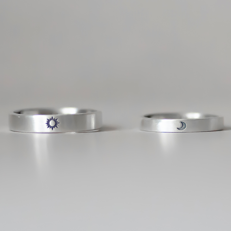 曌 纯银足银999实心日月朝暮做旧情侣对戒指环开口可调节七夕礼物