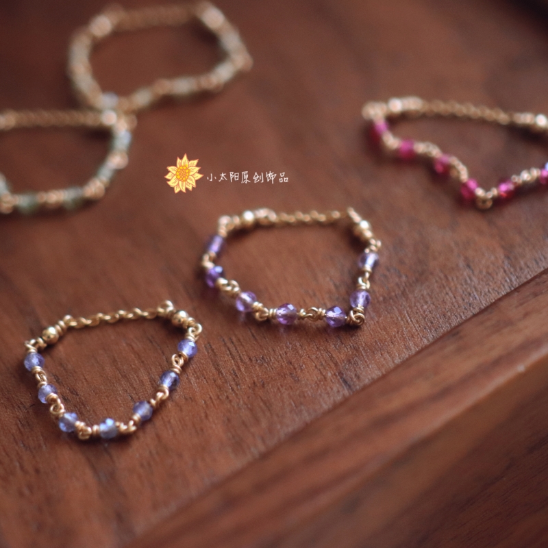太阳原创设计美国14K注金天然黄水晶极细叠戴食指链条戒指女小众