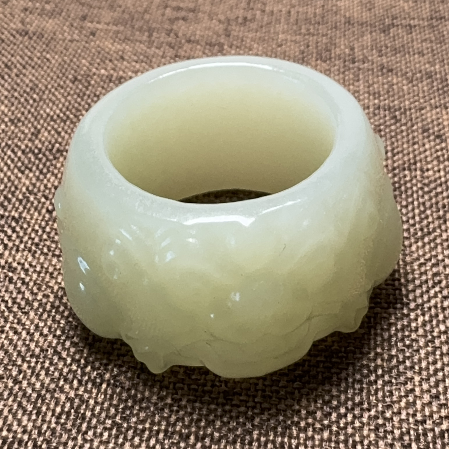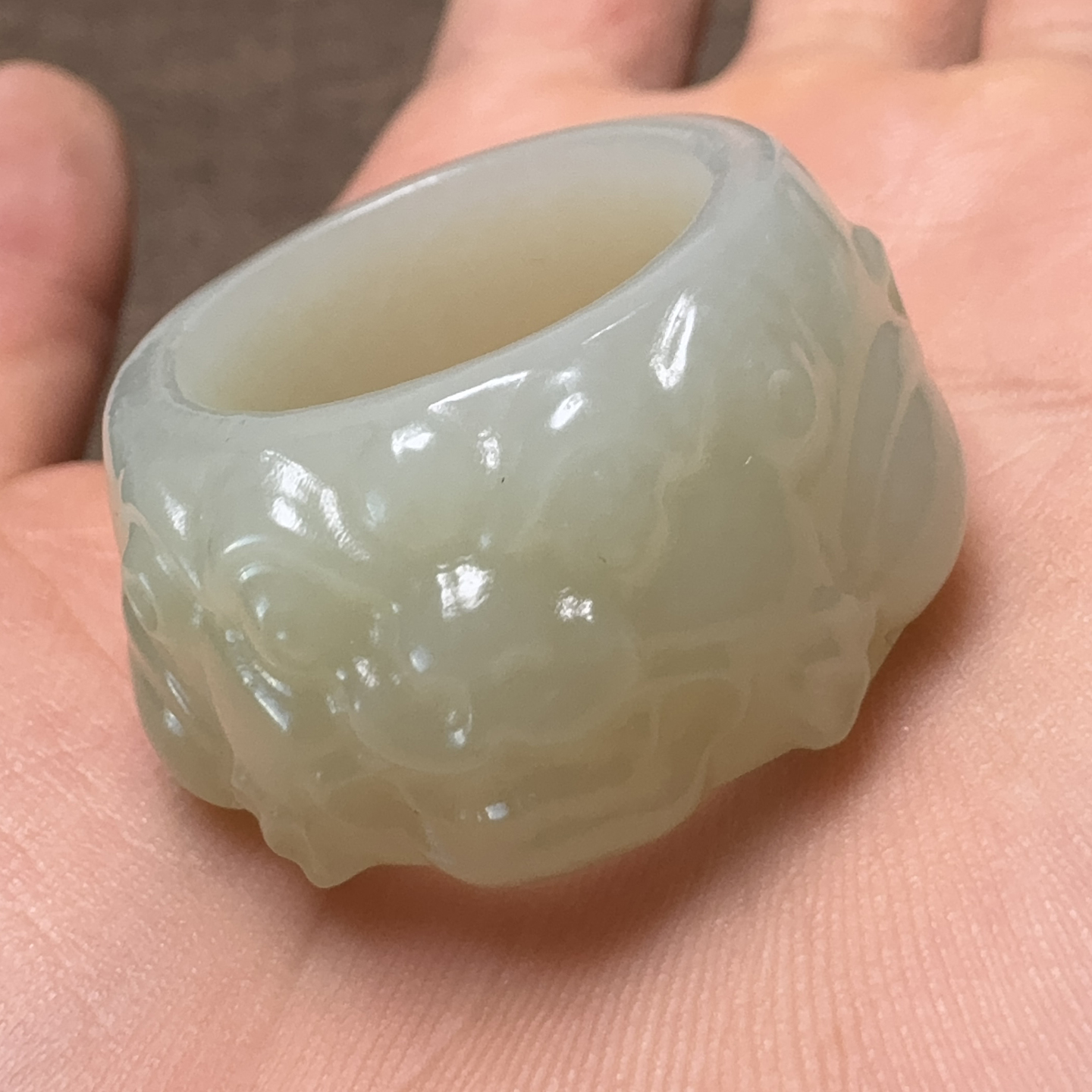 和田玉新疆细腻油润且末料白玉卡21mm貔貅守护戒指扳指Q
