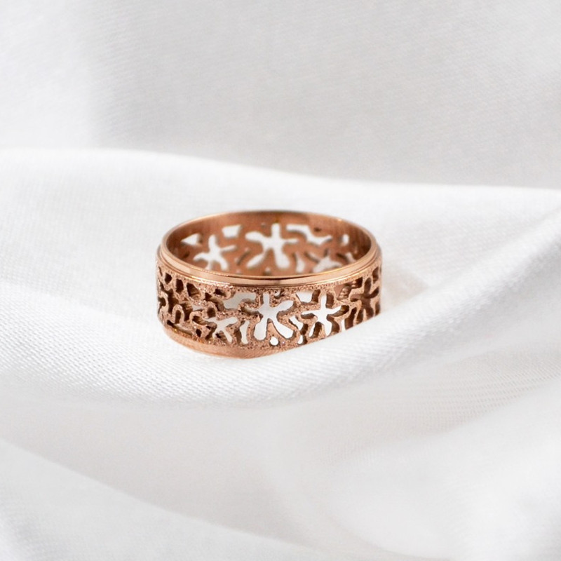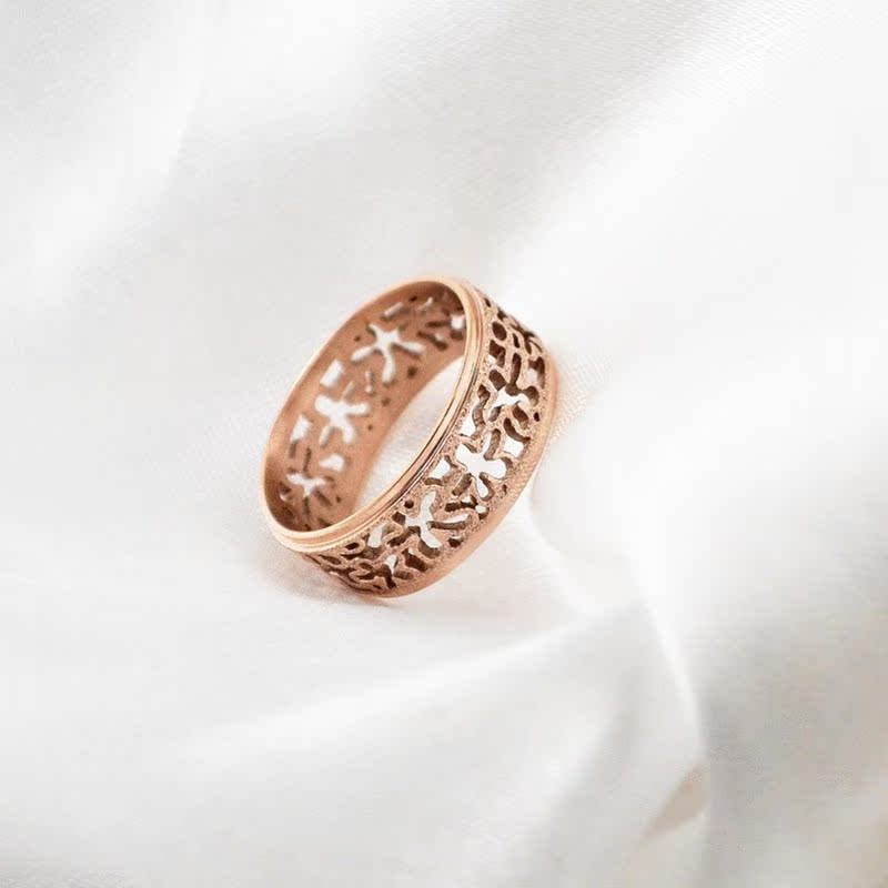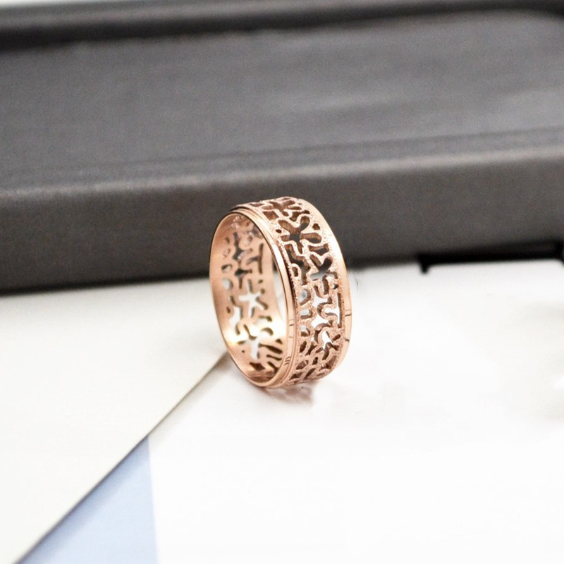 空心花朵磨砂18K玫瑰金戒指 日韩款冷淡风简约百搭女款钛钢指环