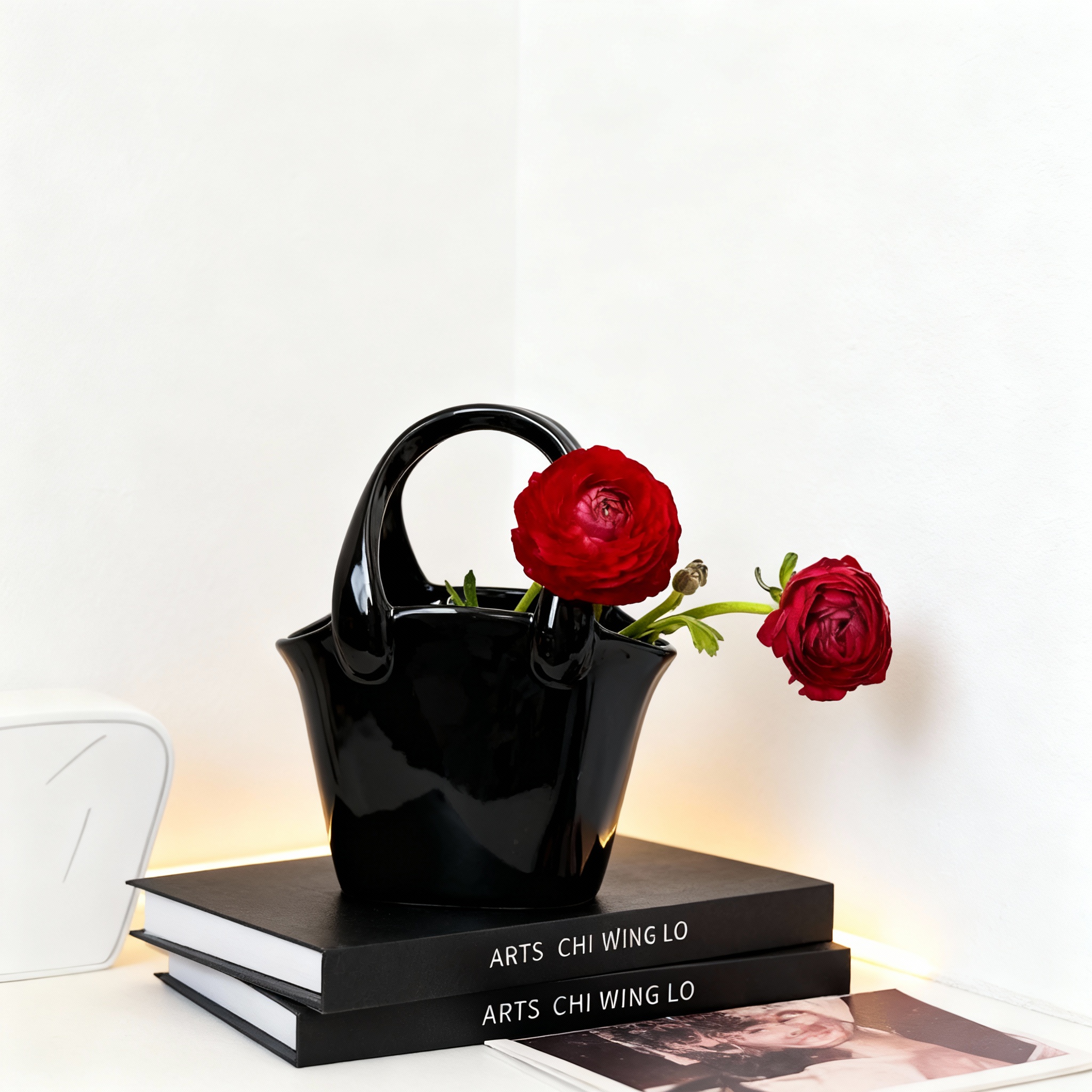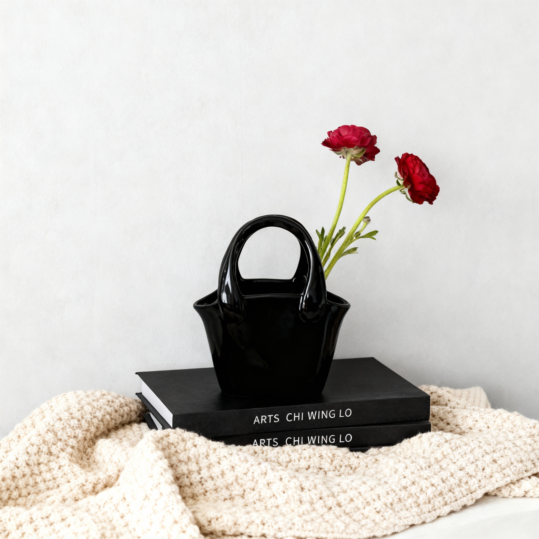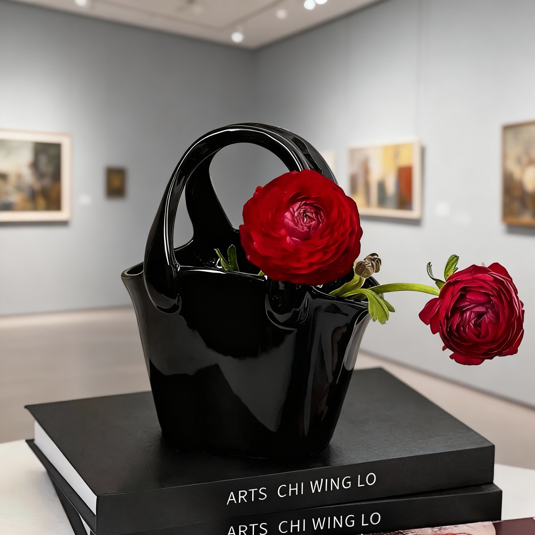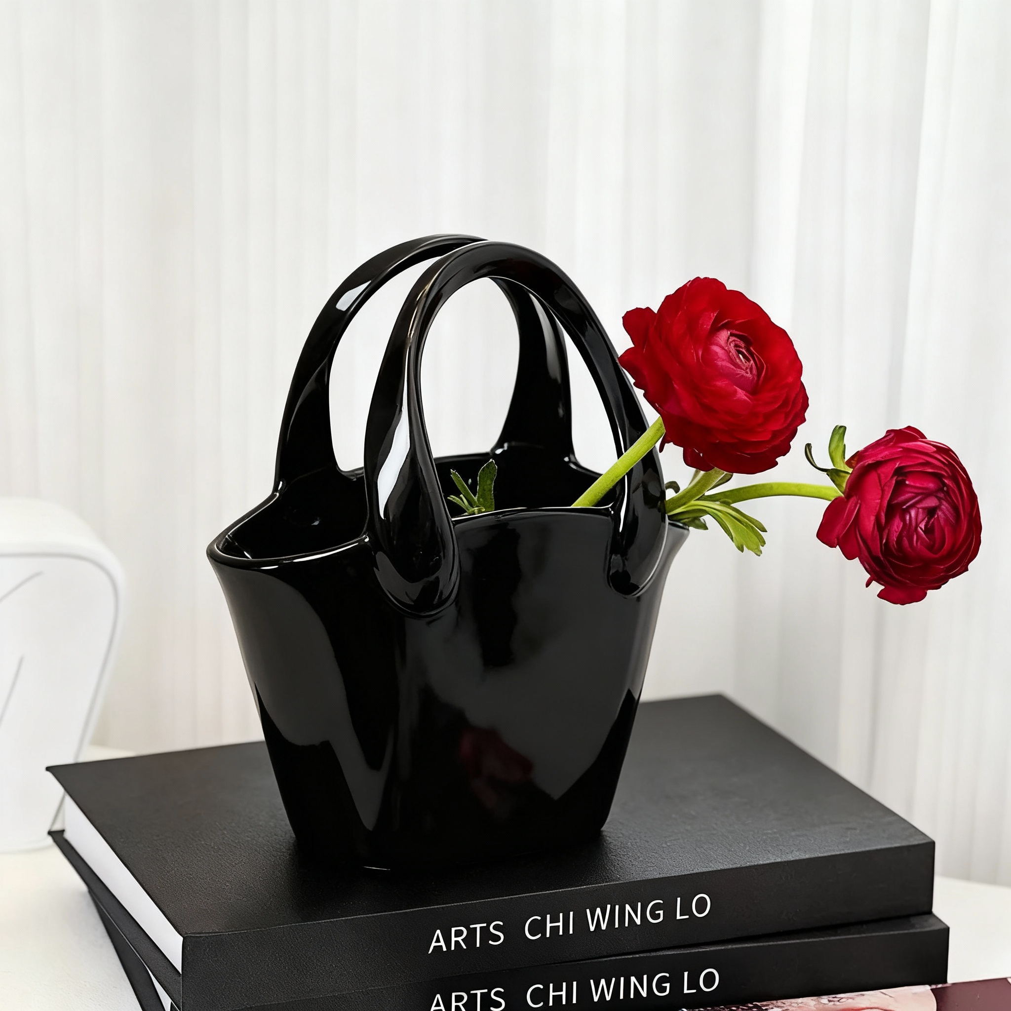 插花花瓶简约陶瓷花器客厅餐桌高级感小众设计师黑色家居装饰摆件
