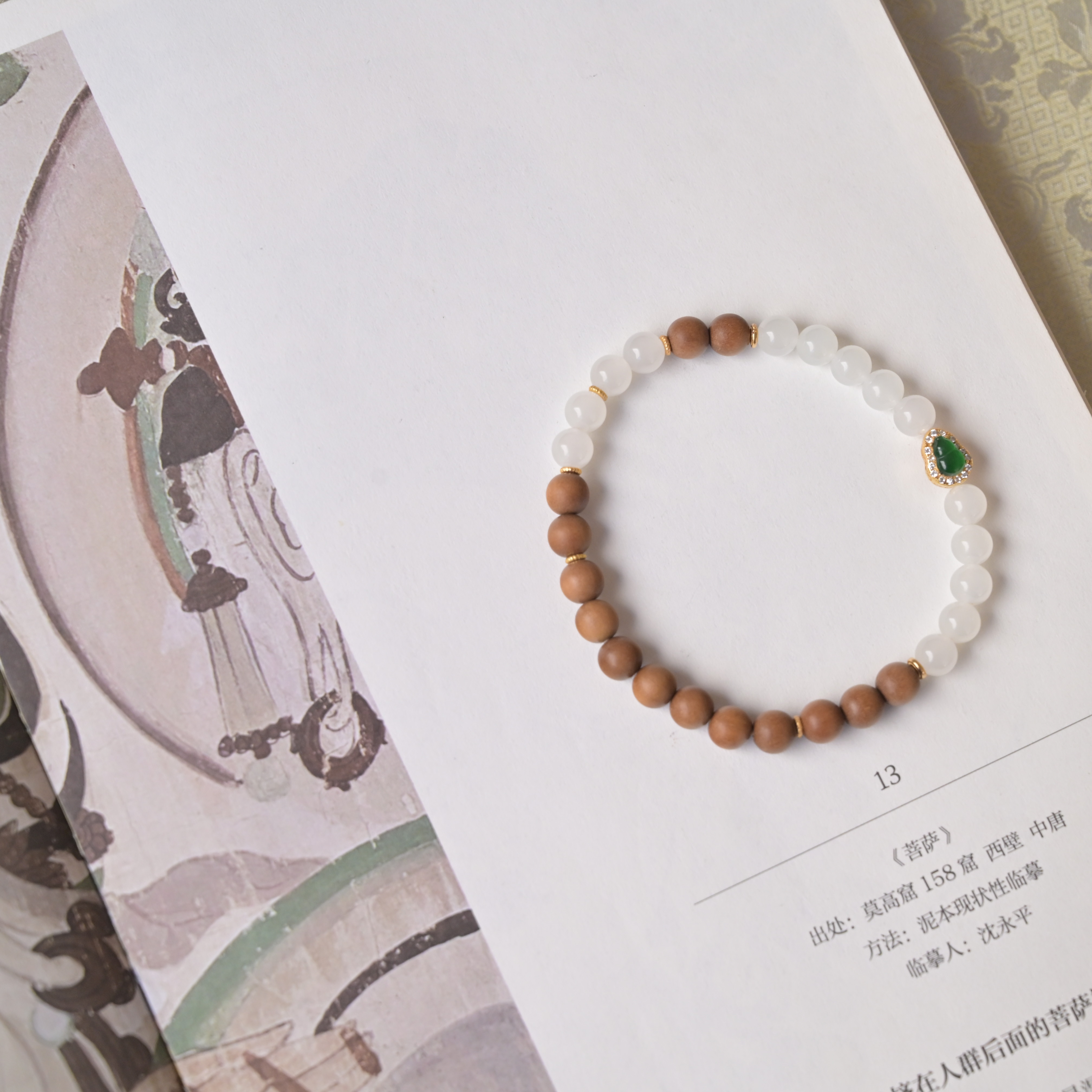 一念·设计「扶苏」国风设计款和田玉白玉老山檀手串6mm
