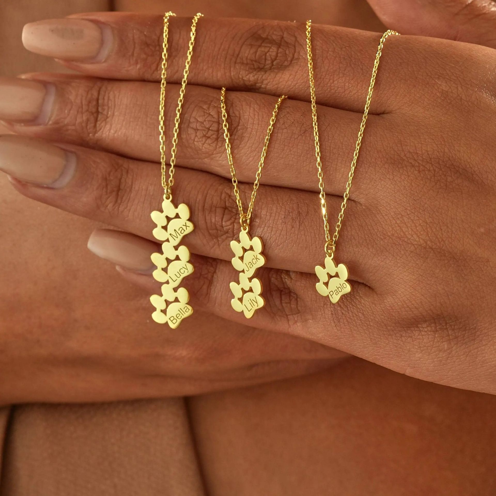 跨境热销欧美宠物设计感脚印项链个性化不锈钢私人可定制名字吊坠