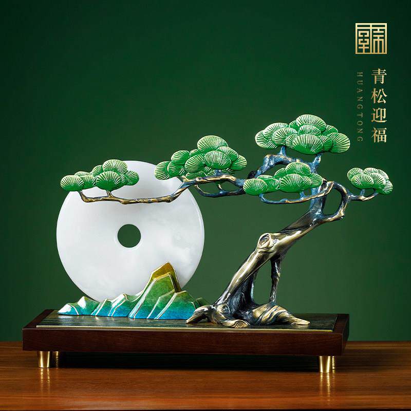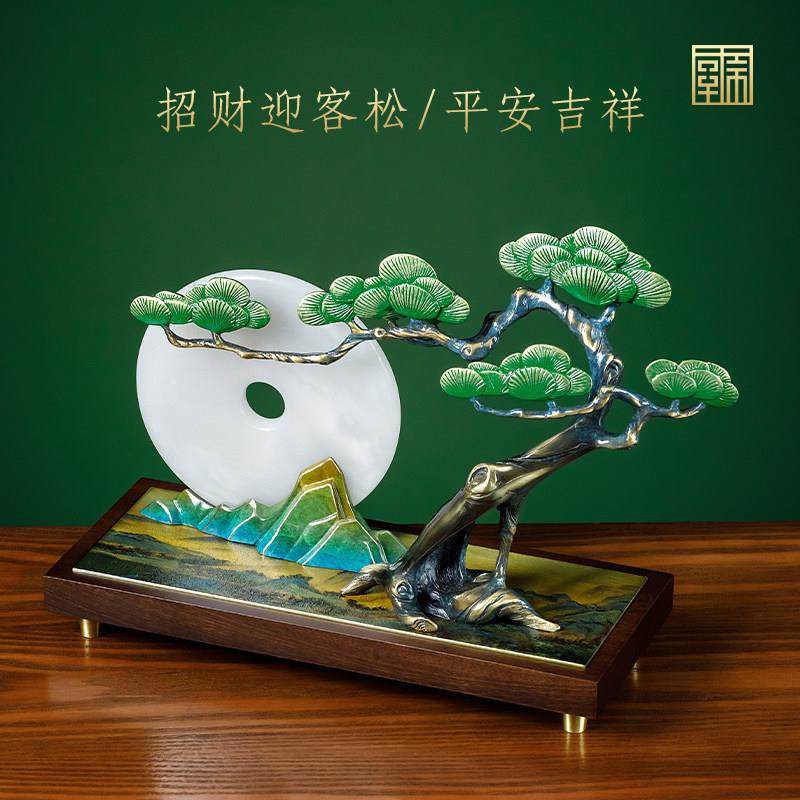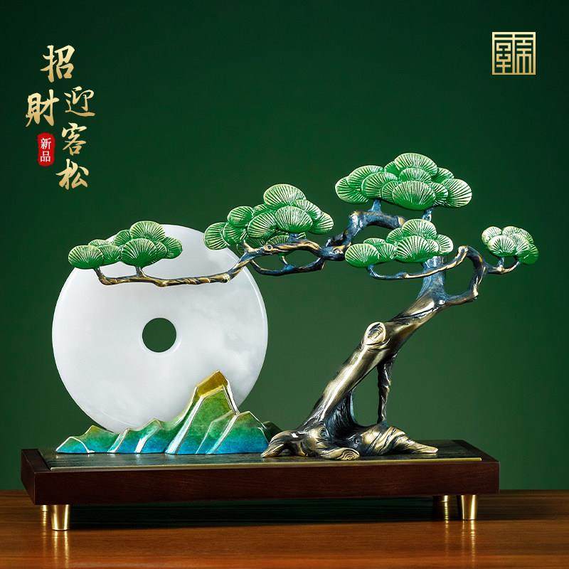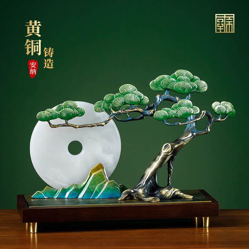 铜迎客松平安扣摆件高档办公室玄关装饰开店公司开业乔迁搬迁礼物