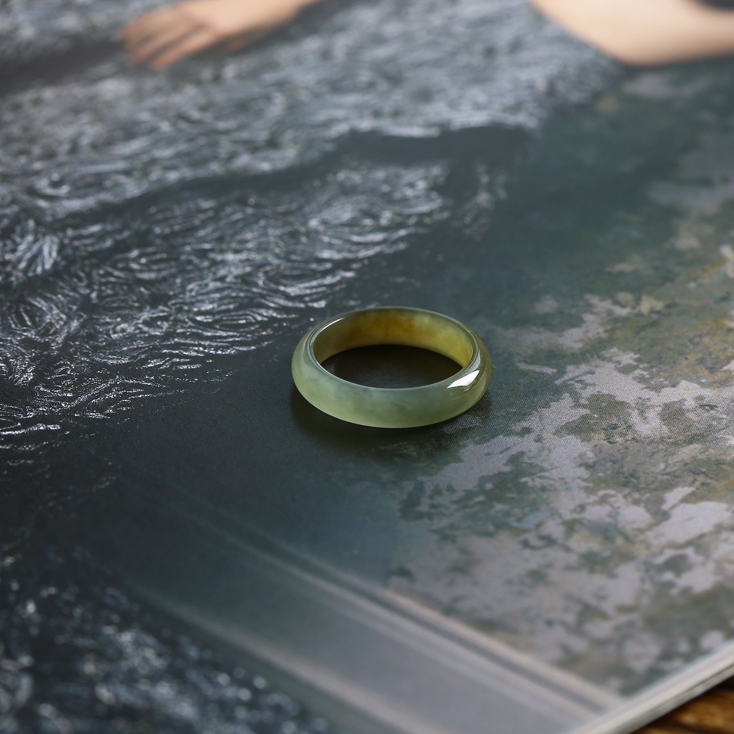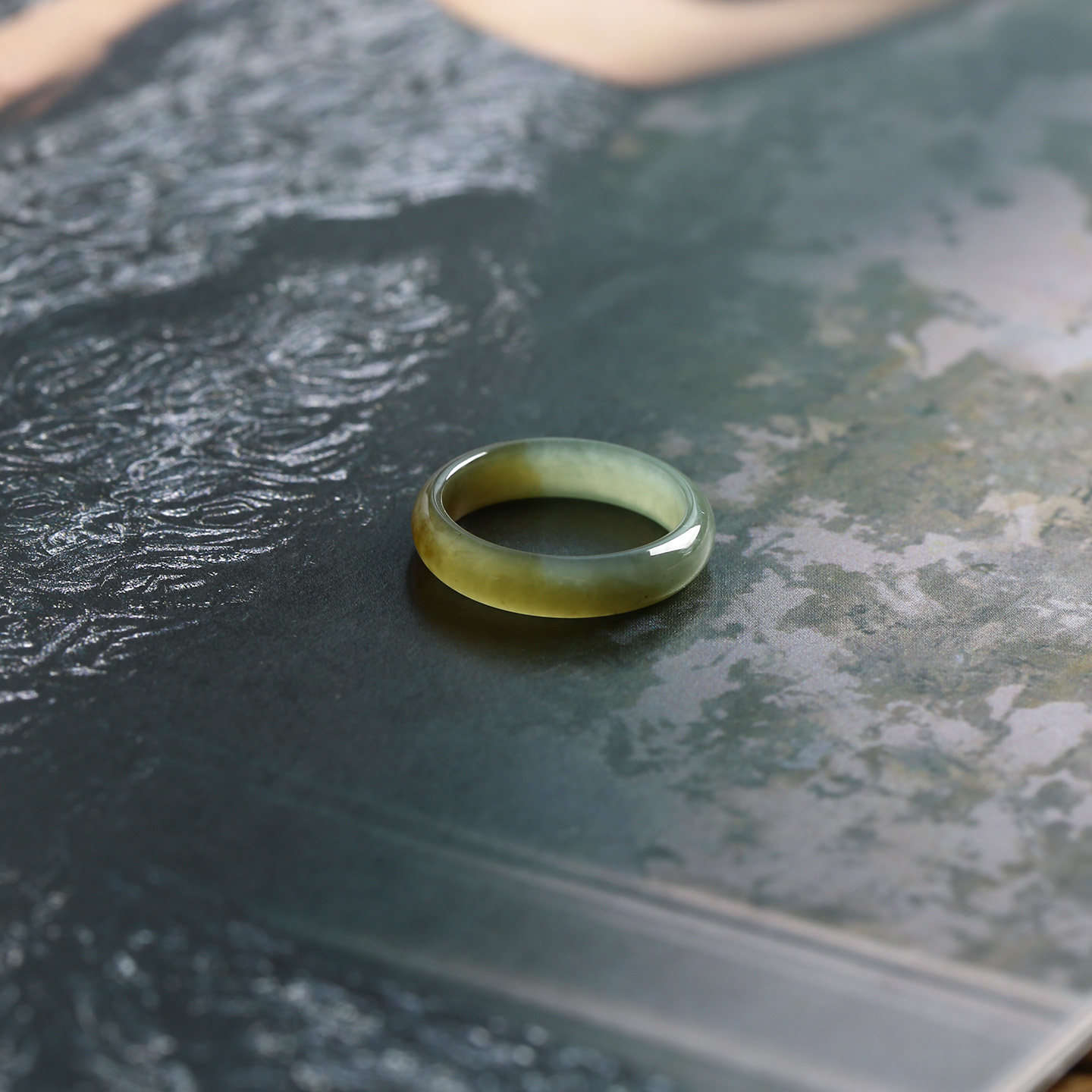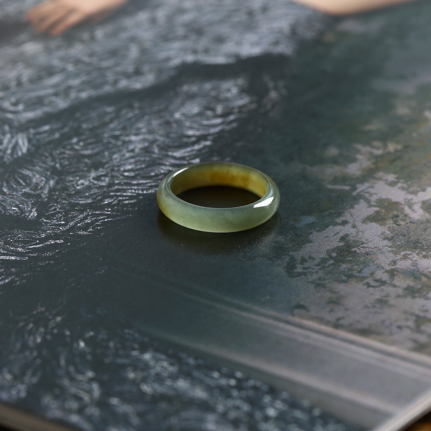 20号戒指 新疆和田玉糖料糖青玉泥鳅背圆弧素圈指环 2830