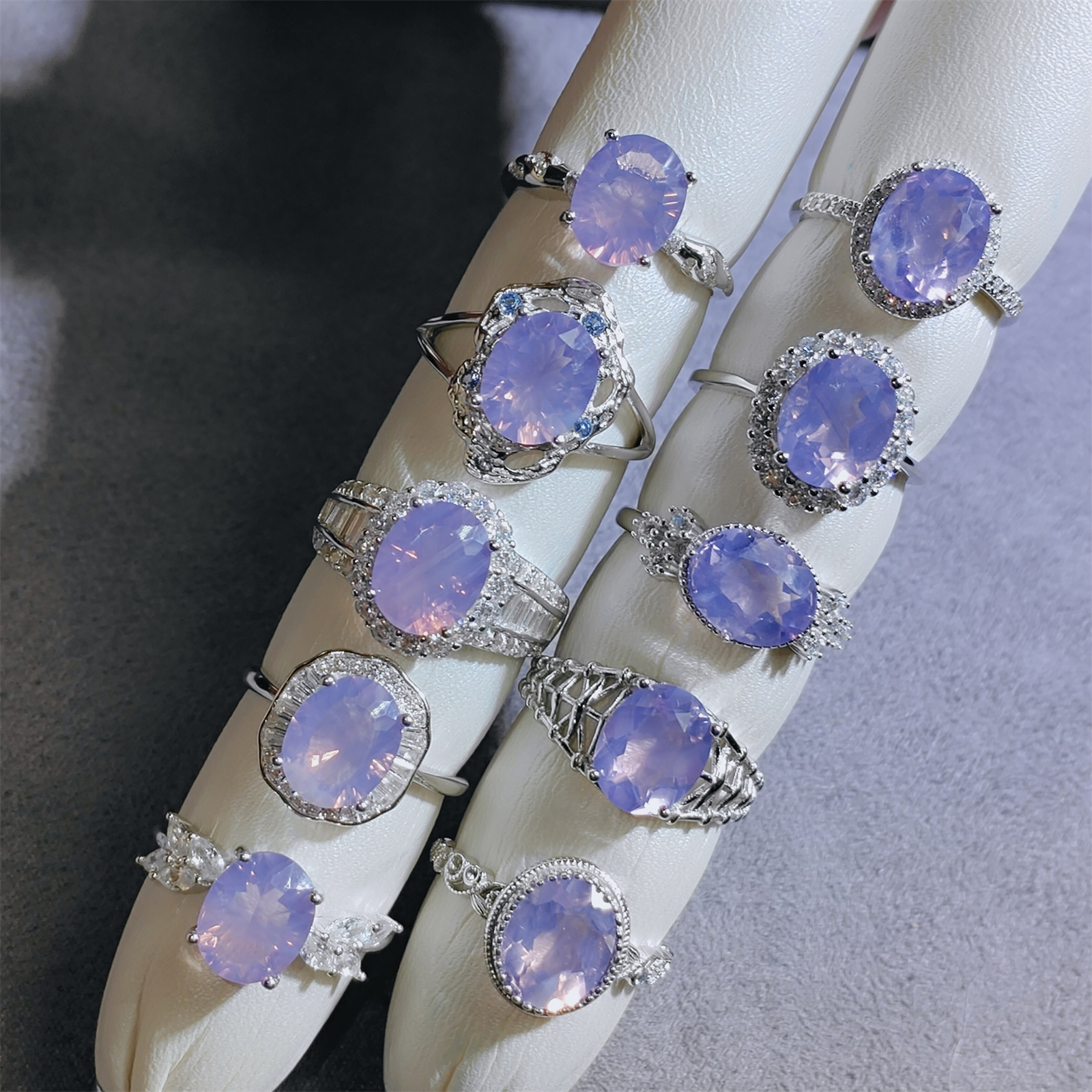 天然彩宝天然紫水晶戒指紫玉晶戒指紫色系梦幻落日色925银戒指