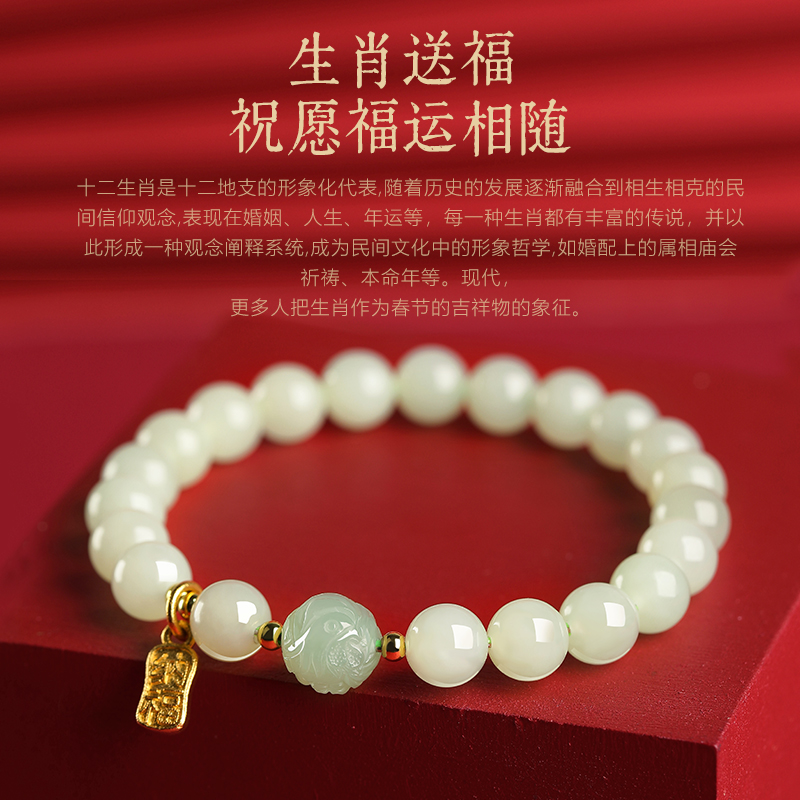 2025和田玉六合生肖手链蛇年转运珠蛇鸡牛虎马狗猪兔羊猴鼠龙手串