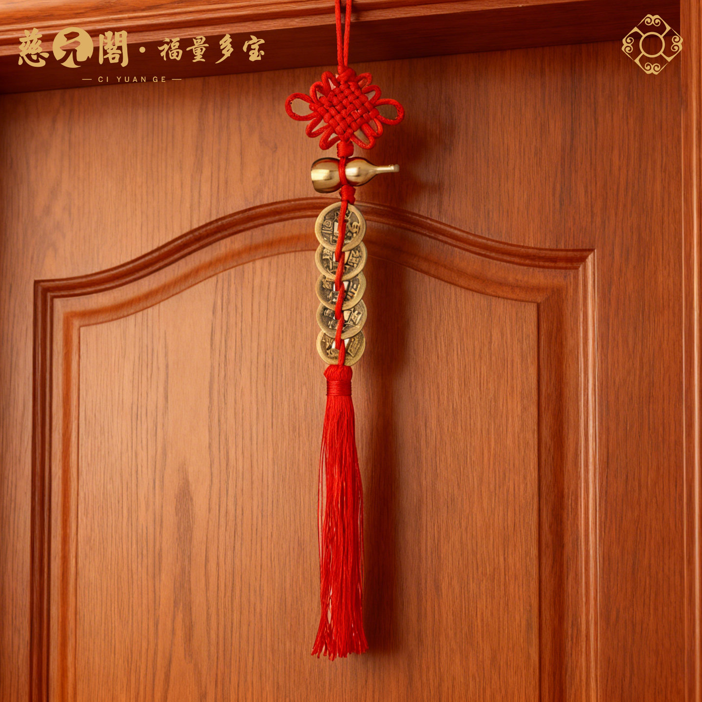 慈元阁2026五帝钱门对门葫芦挂件真品铜钱压门槛入户大门玄关摆件