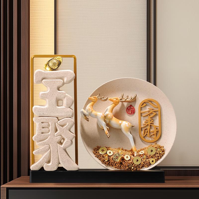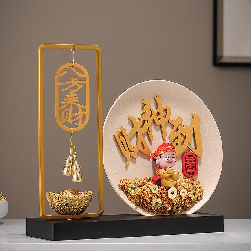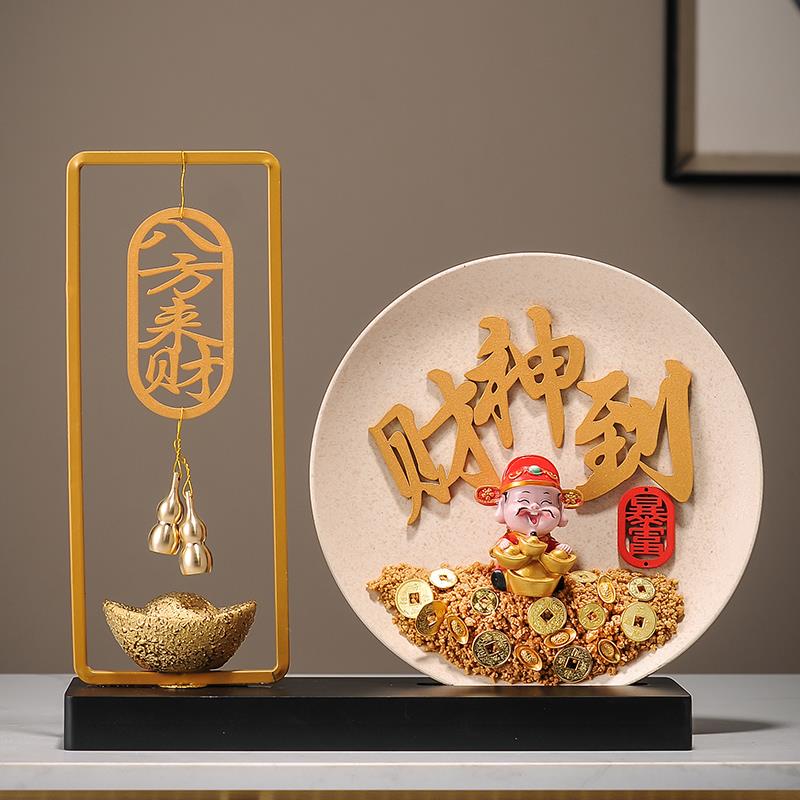 前台财神到装饰摆件招财聚财高级感客厅电视柜工艺品摆盘开业礼物