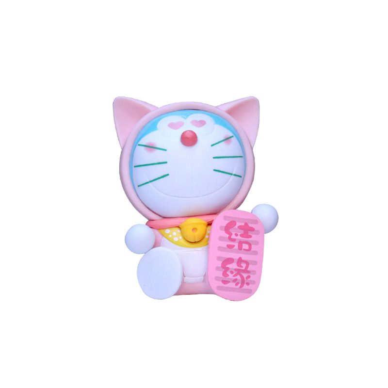 可爱卡通蓝胖子手办幸运盲盒招财猫公仔生日礼物桌面汽车车载摆件