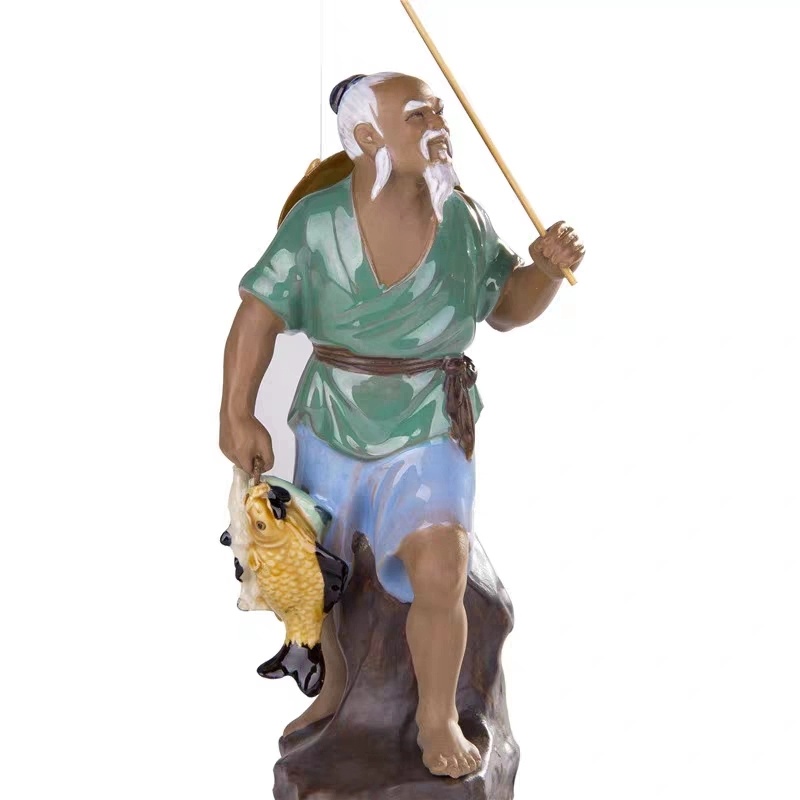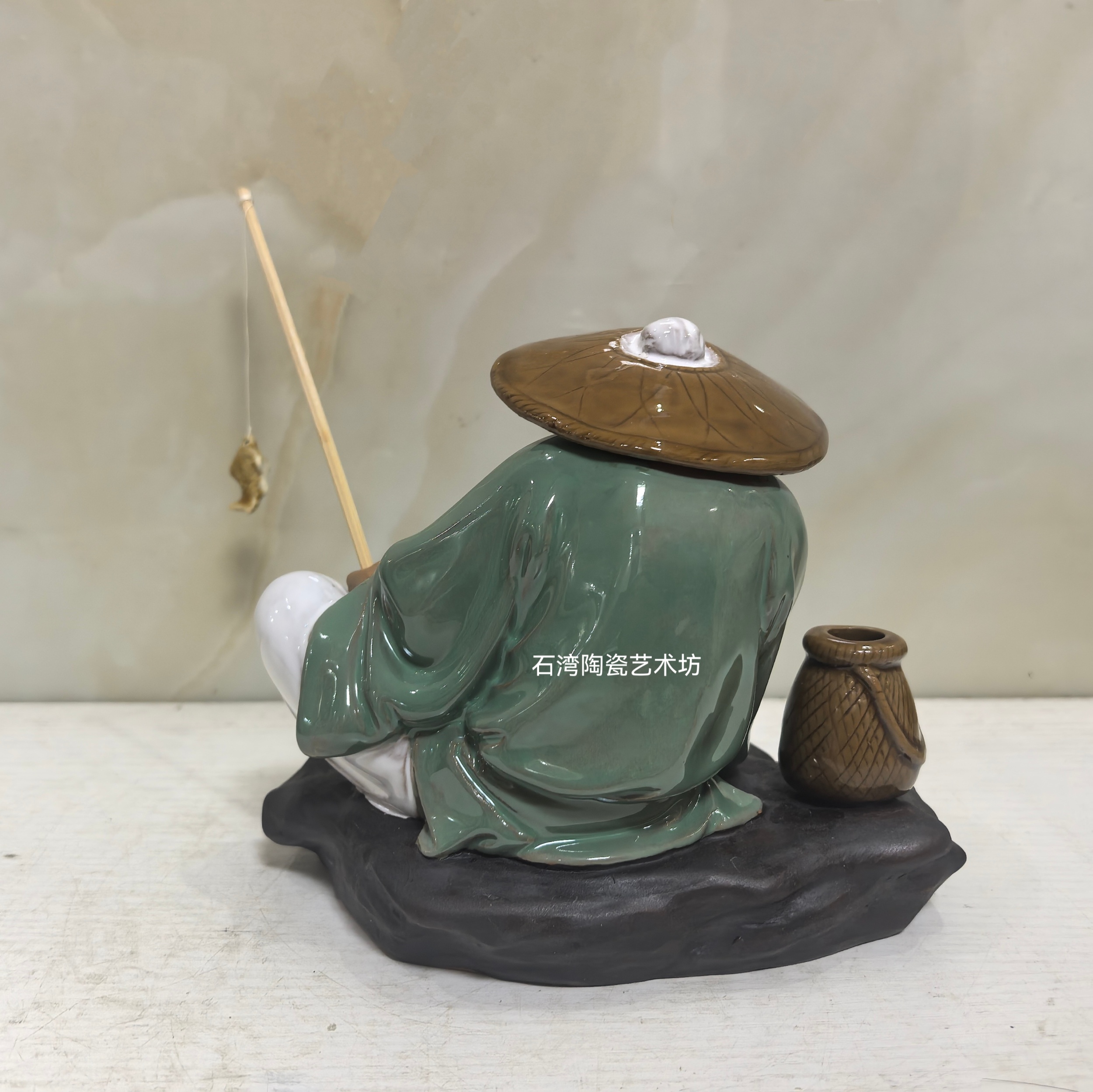 石湾公仔陶瓷渔翁钓鱼家居盆景假山摆件美陶厂老人渔翁桌面摆设