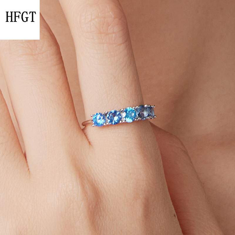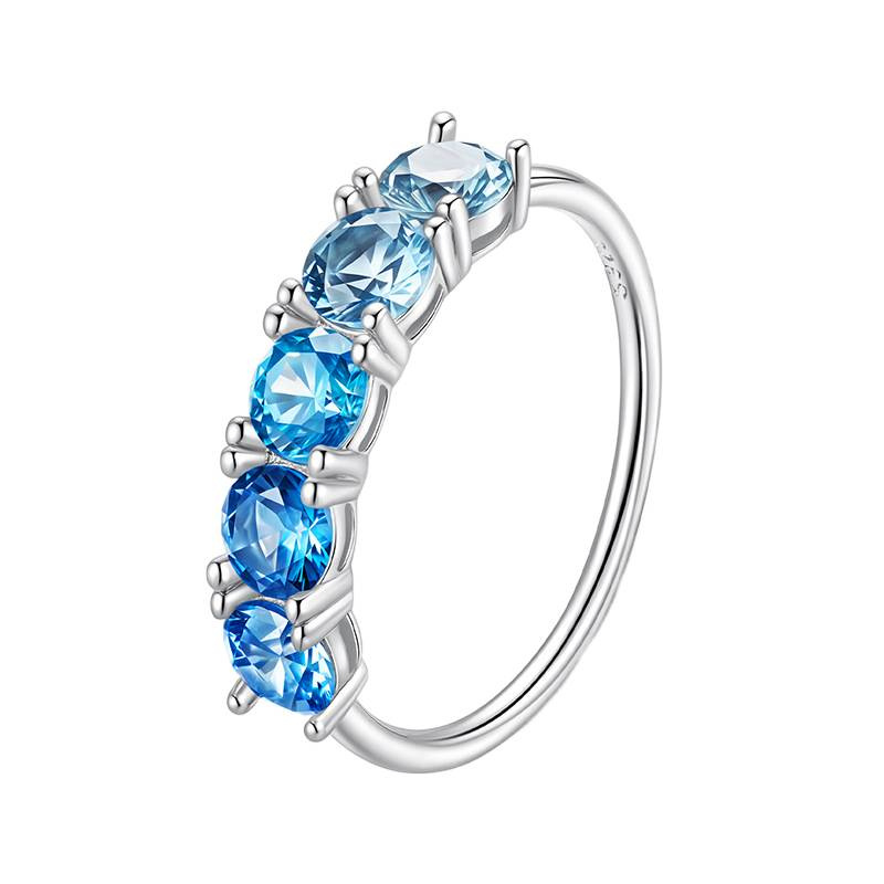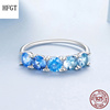 原创奢华蓝色排钻戒指渐变蓝色锆石s925纯银高级感高端戒指手饰女