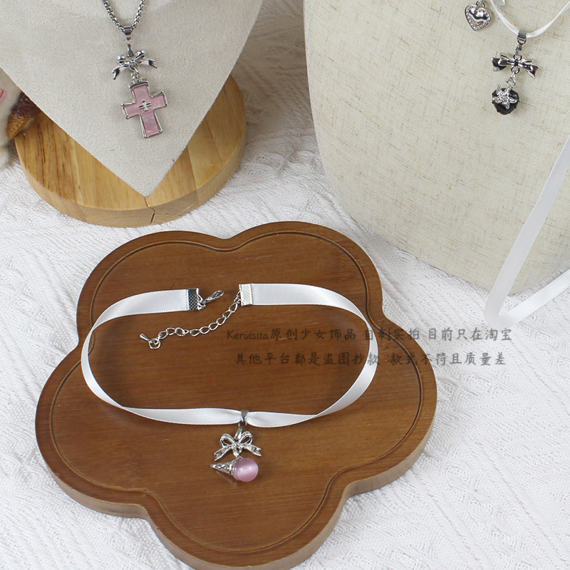 甜筒冰激凌&锁骨链项链choker颈饰白色缎带丝带蝴蝶结少女miu甜妹
