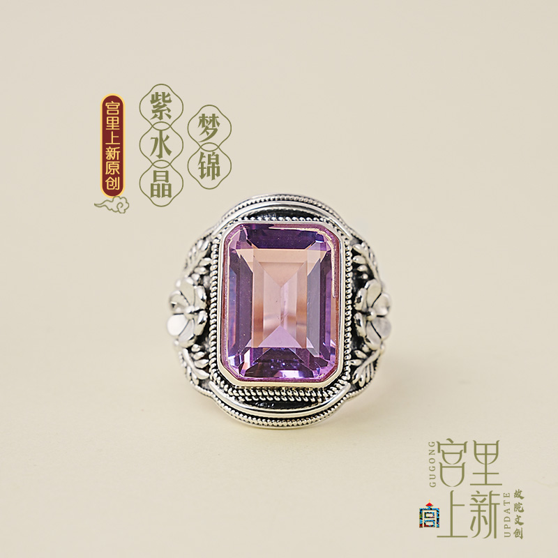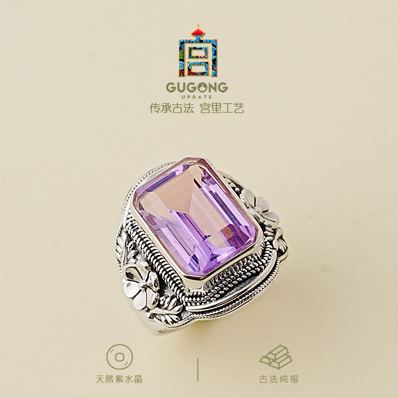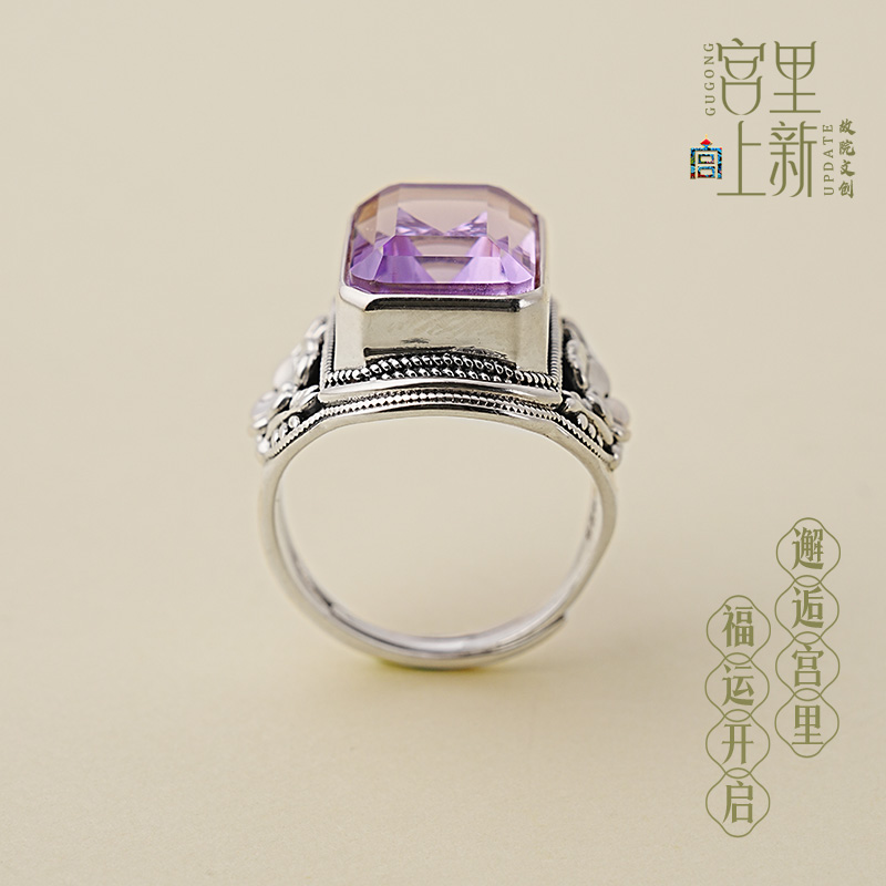 宫里上新紫水晶戒指女天然紫色宝石水晶戒指纯银指环妈妈生日礼物