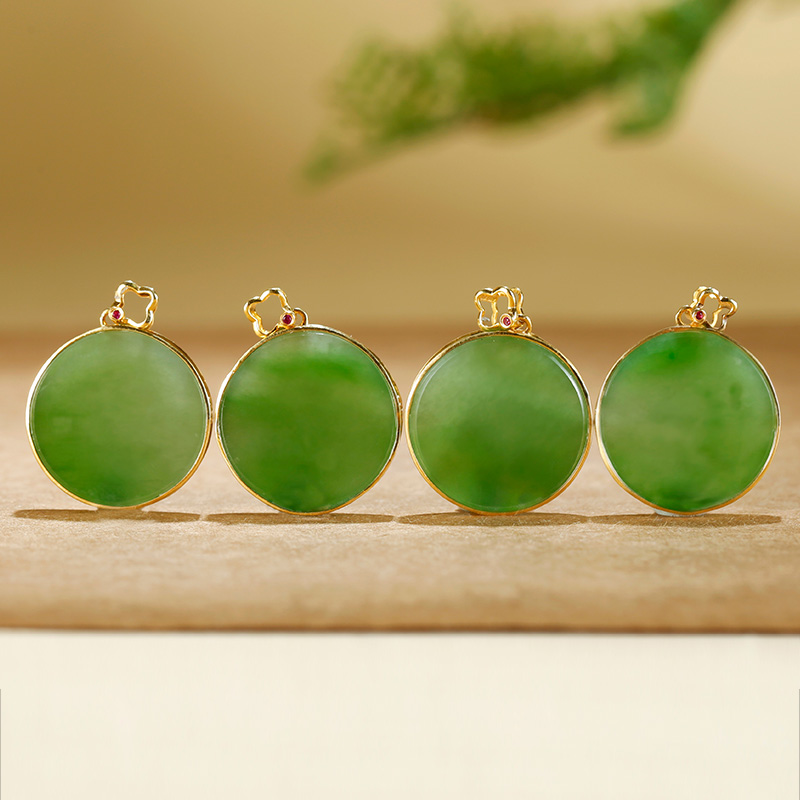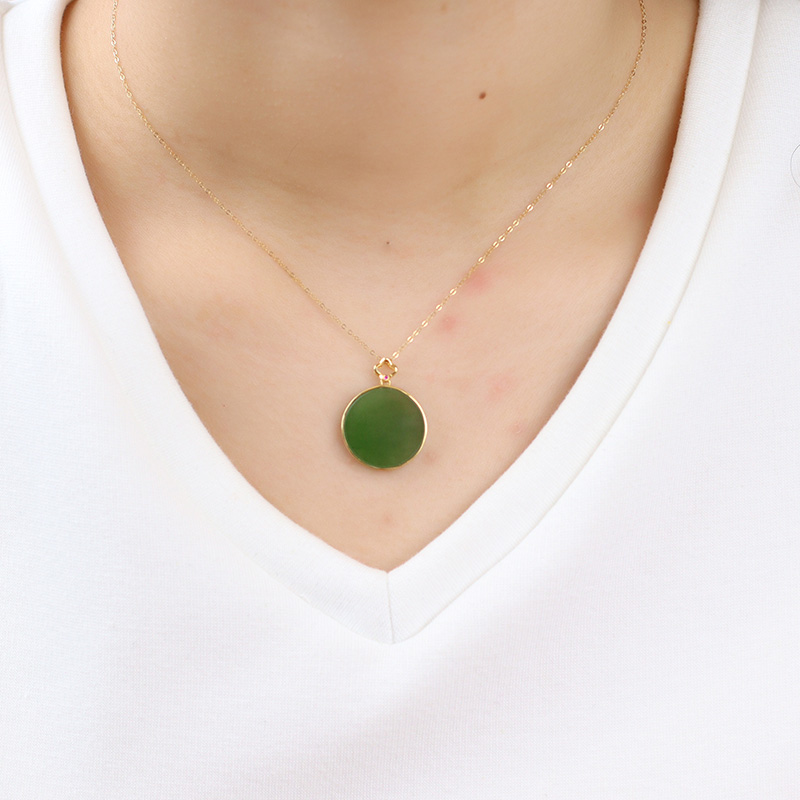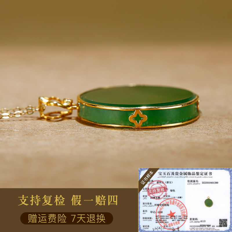 玉友和田玉18K金碧玉吊坠女士款玉坠玉佩玉石玉挂件不含链子孤品