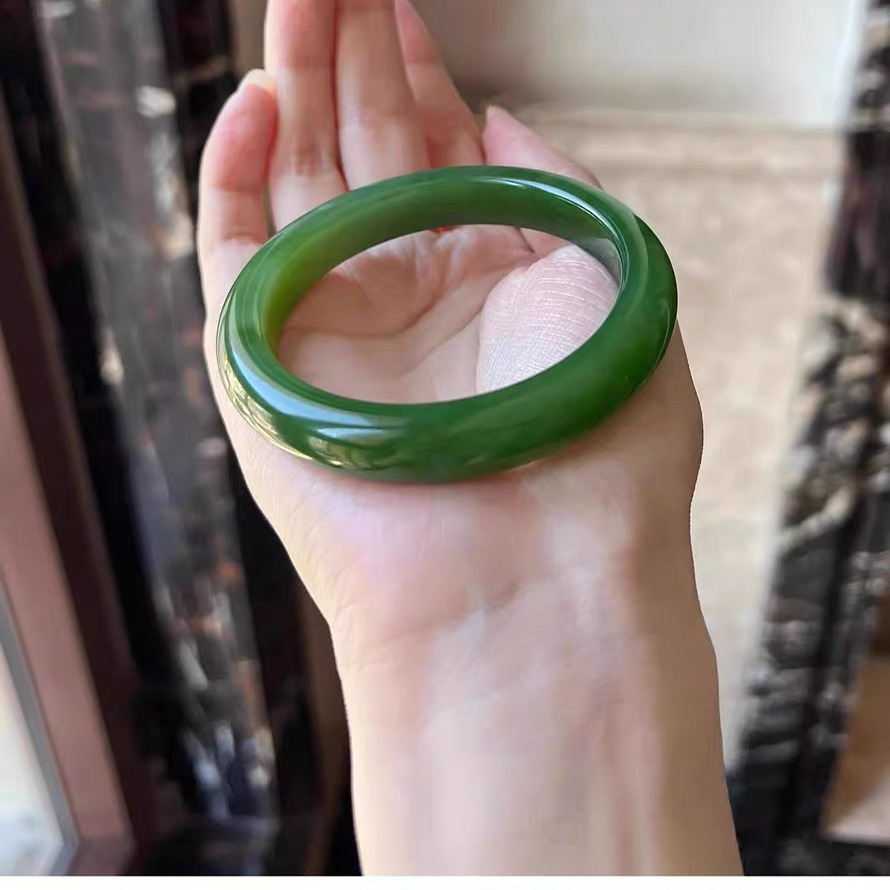 和田色玉碧绿色玉手镯菠菜帝王绿女款玉石手镯子常规款时尚款网红