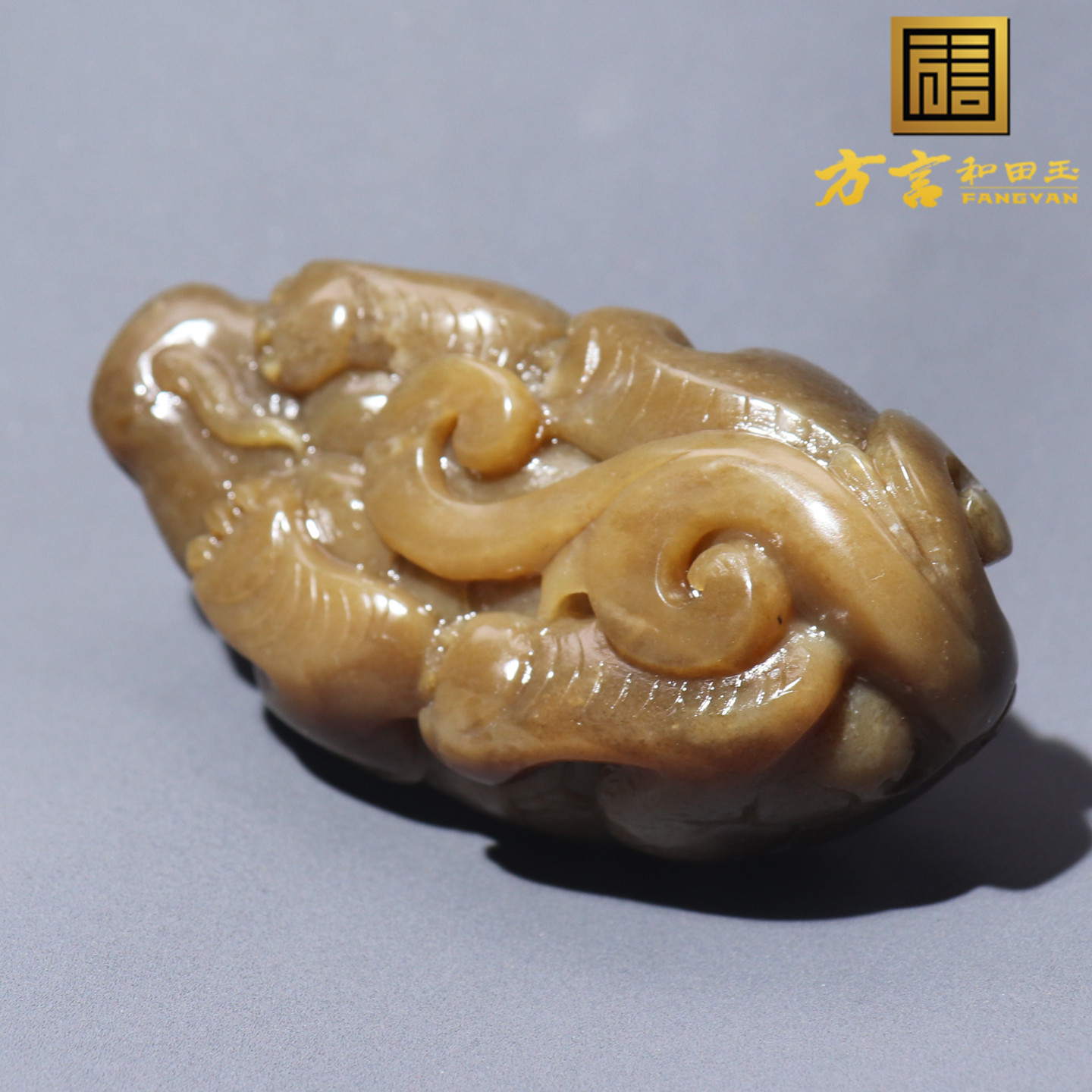 精品方言和田玉珍藏罕见新疆细腻油润且末料糖白玉貔貅把件摆件A8