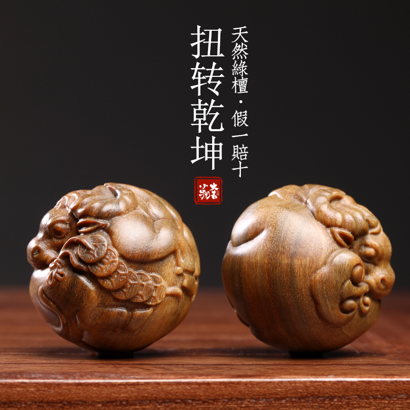 天然绿檀紫檀牛转乾坤保健球把玩球木雕手把件摆件转运文玩按摩球
