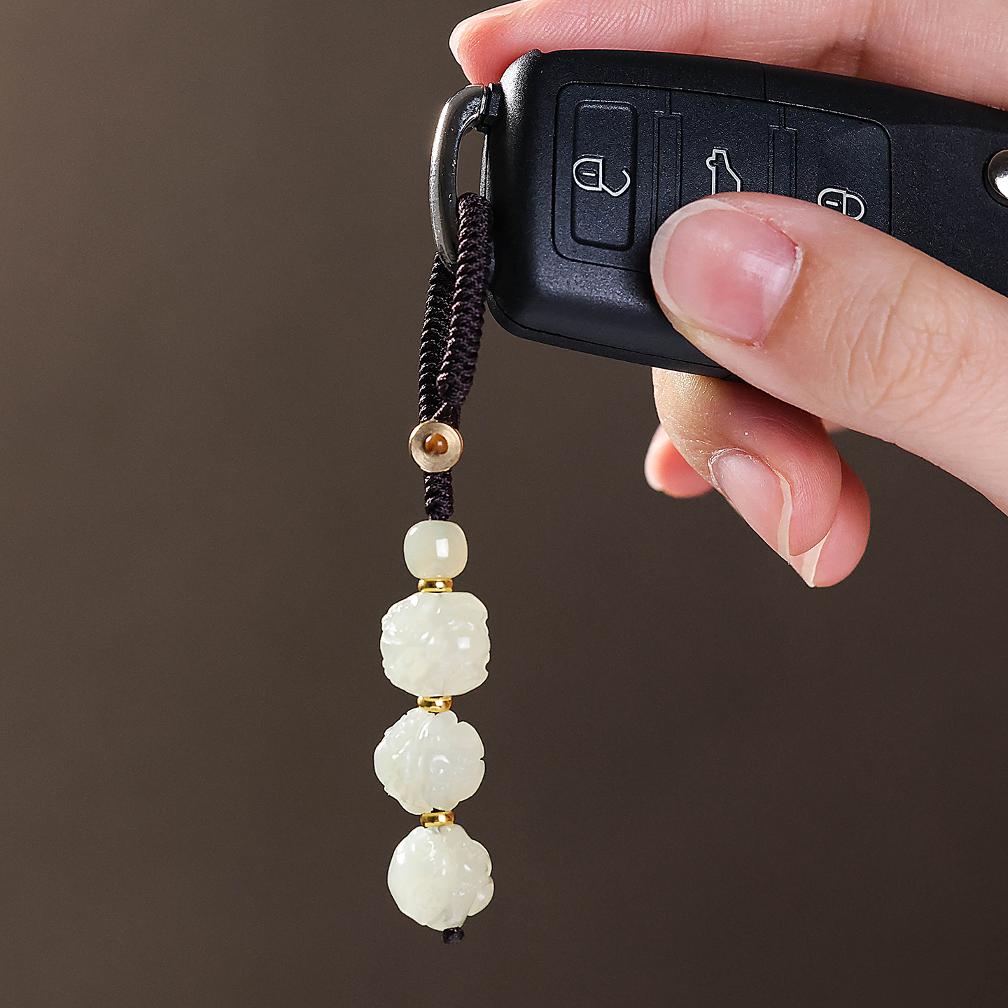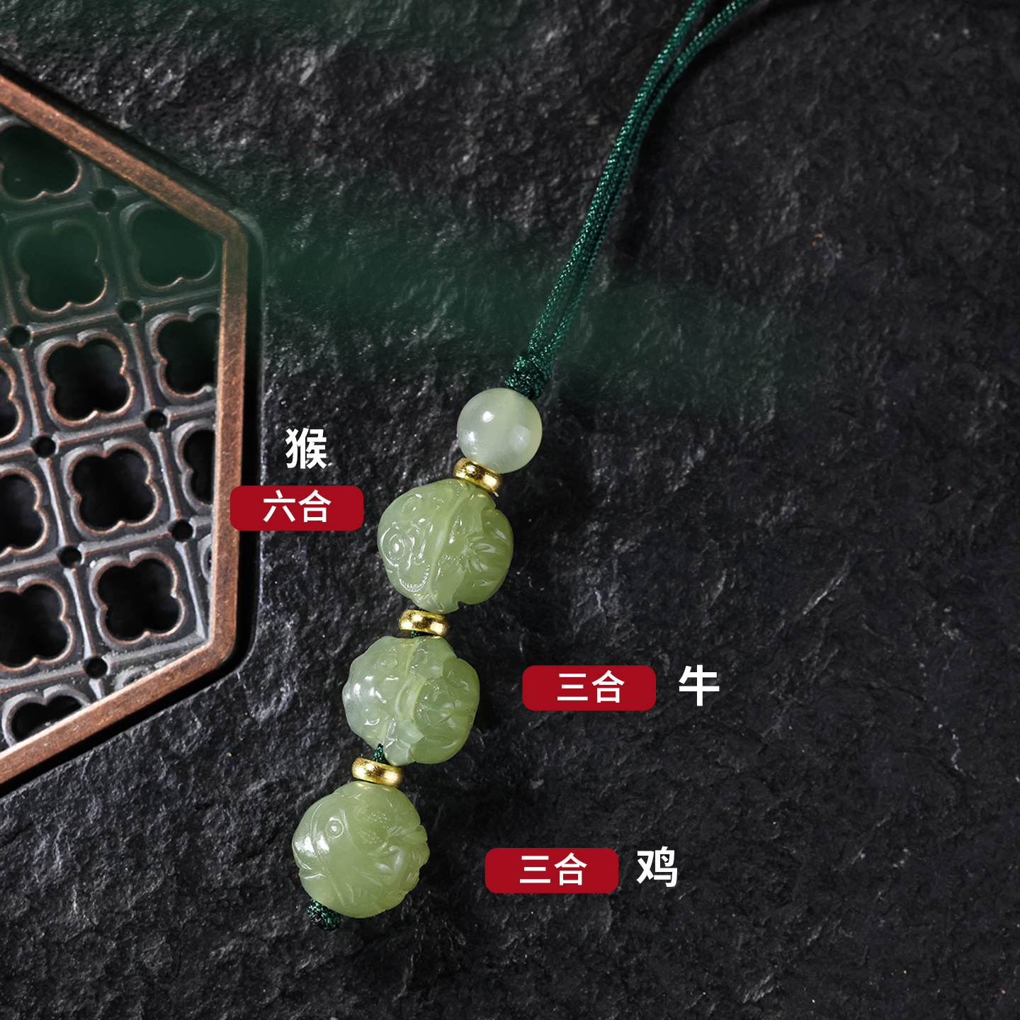 天然和田玉生肖三合六合钥匙扣挂件吊坠男女款本命年2026年吉祥物