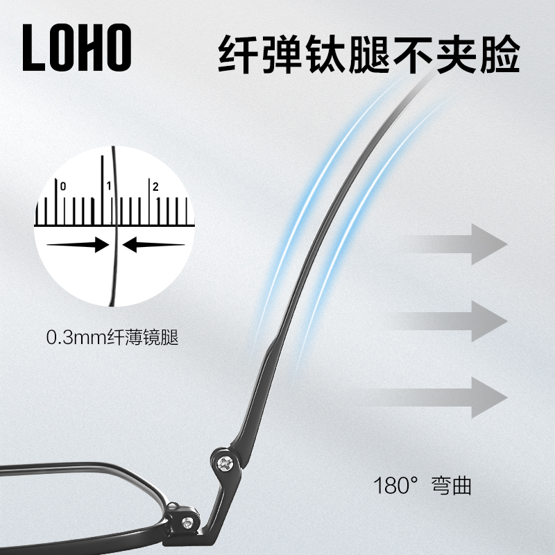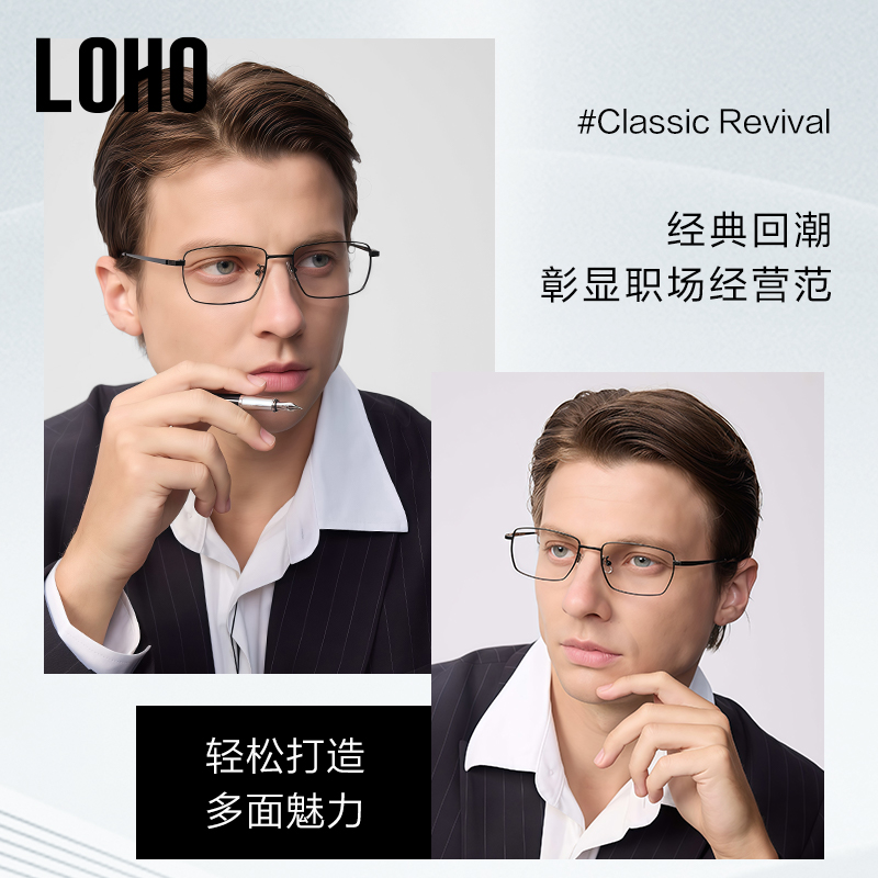 LOHO新商务眼镜超轻纯钛近视防蓝光理工男商务全框镜架配蔡司镜片