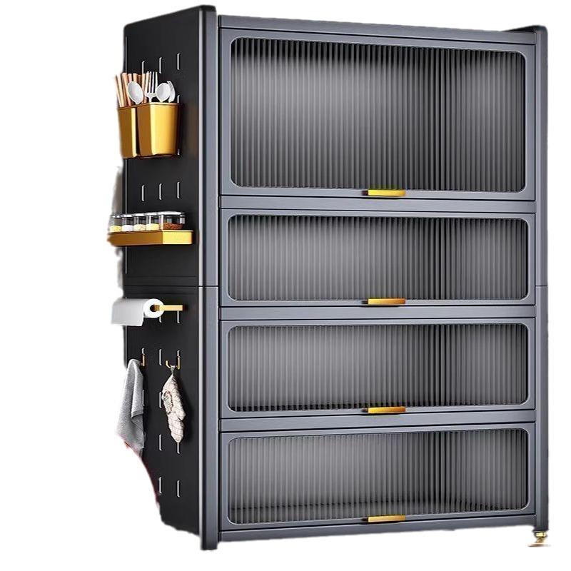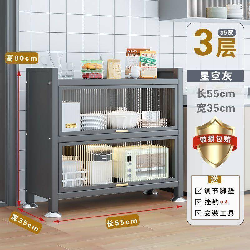 家用翻盖厨房置物架落地多层收纳柜子多功能碗餐边柜橱柜储物柜