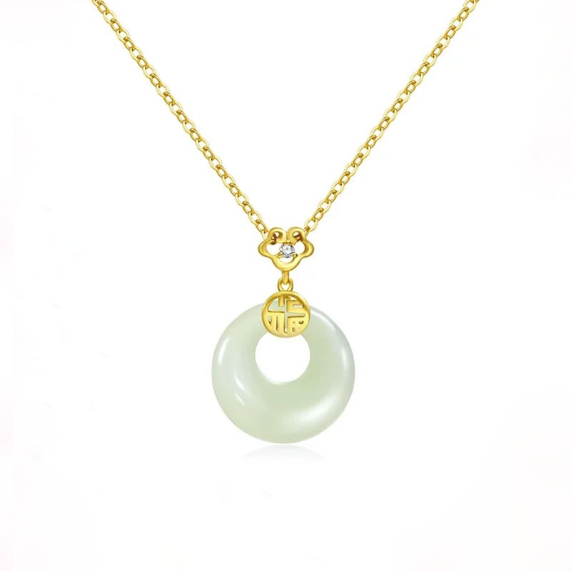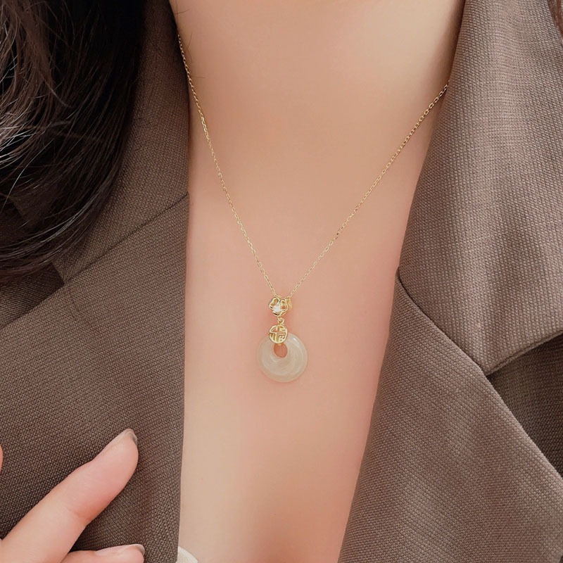 新款s999纯银简约平安扣和田玉项链女吊坠玉石锁骨链新中式饰品