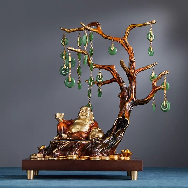 威弗列德弥勒佛招财摆件铜发财树客厅玄关桌面装饰品乔迁开业礼品