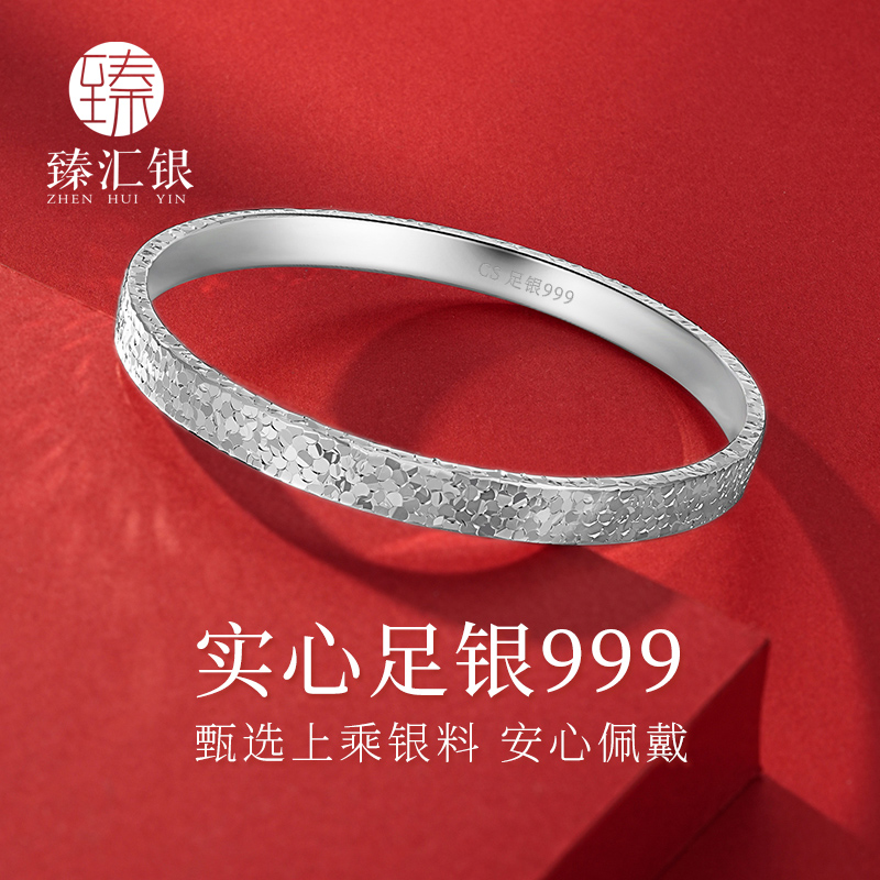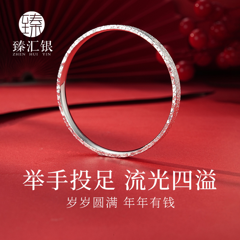 中国白银 臻汇银碎碎冰冰纯银镯子足银999星光碎银手镯女生日礼物
