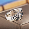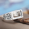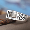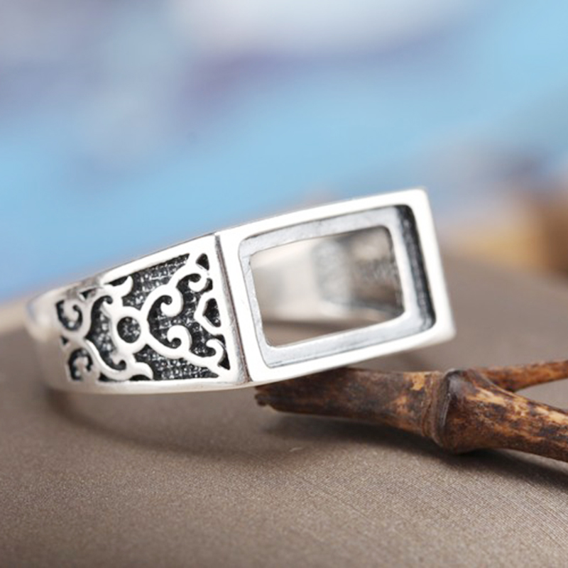 通体S925纯银戒指空托镶嵌长方形绿松石翡翠戒面男士复古戒托7*12