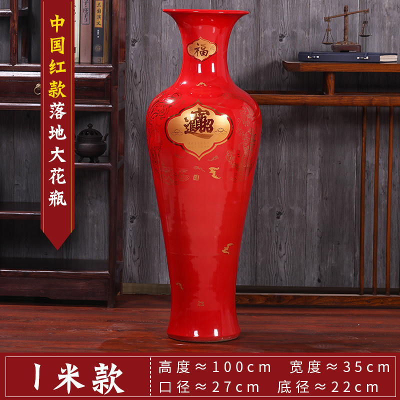 景德镇陶瓷器中国红客厅落地大花瓶家居进宝办公酒店花瓶装饰摆件
