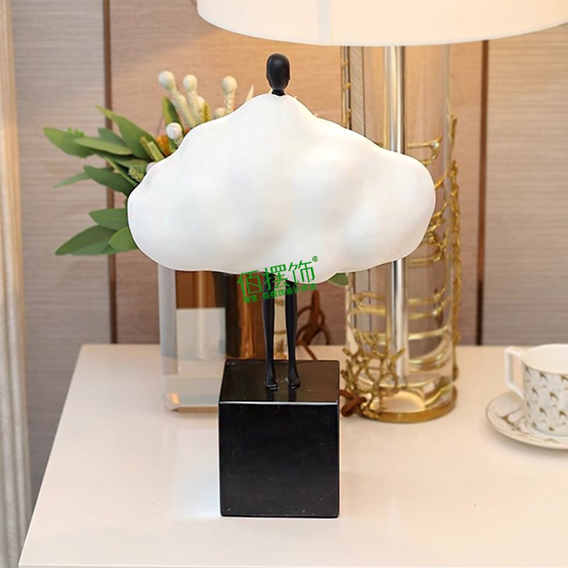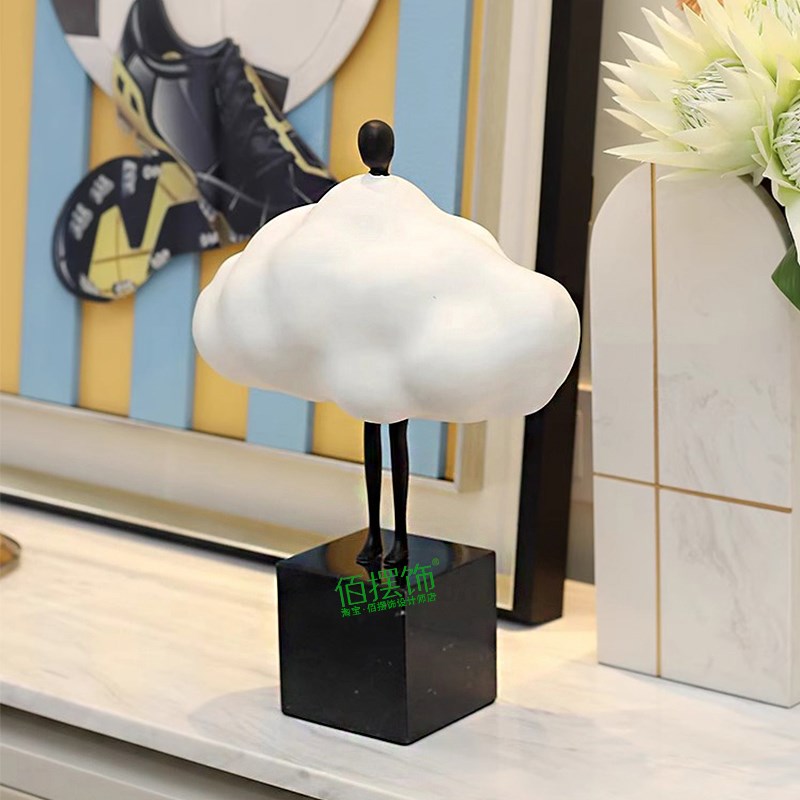 抽象云朵女孩摆件奶油风客厅电视柜儿童房可爱装饰品极简艺术雕塑