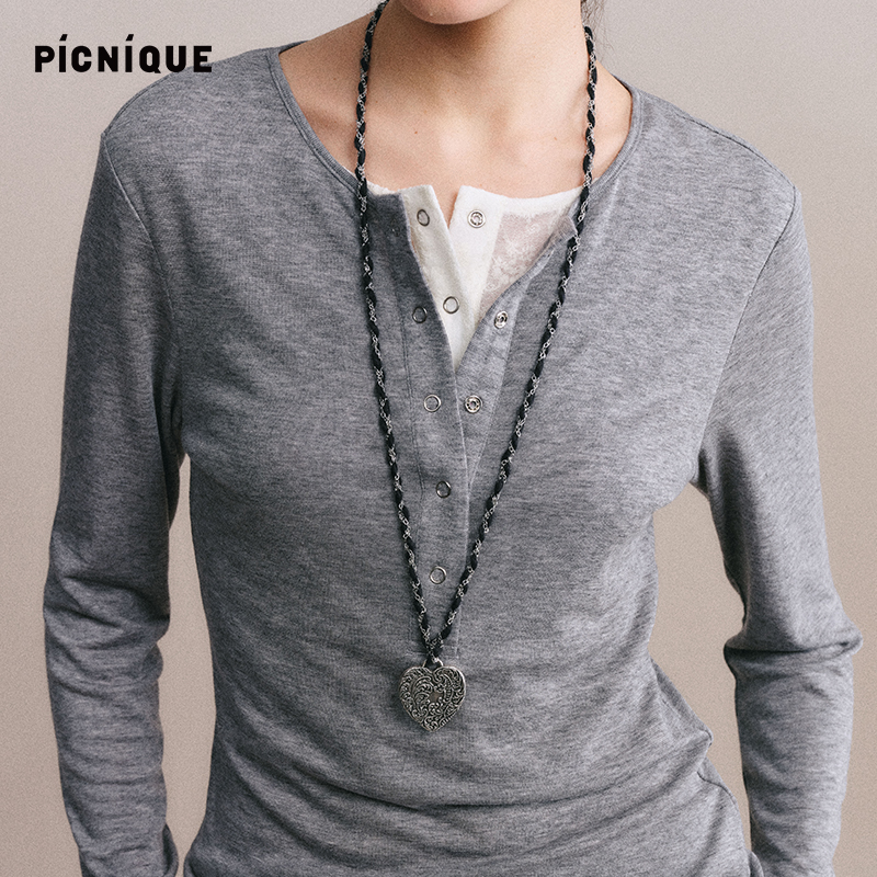 Picnique Theater 雕刻复古爱心编织长项链小众做旧民族风毛衣链