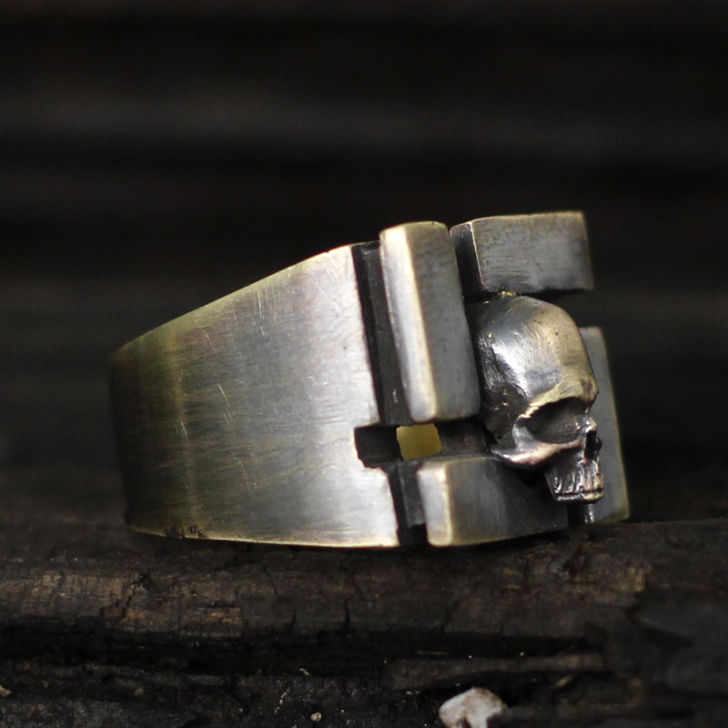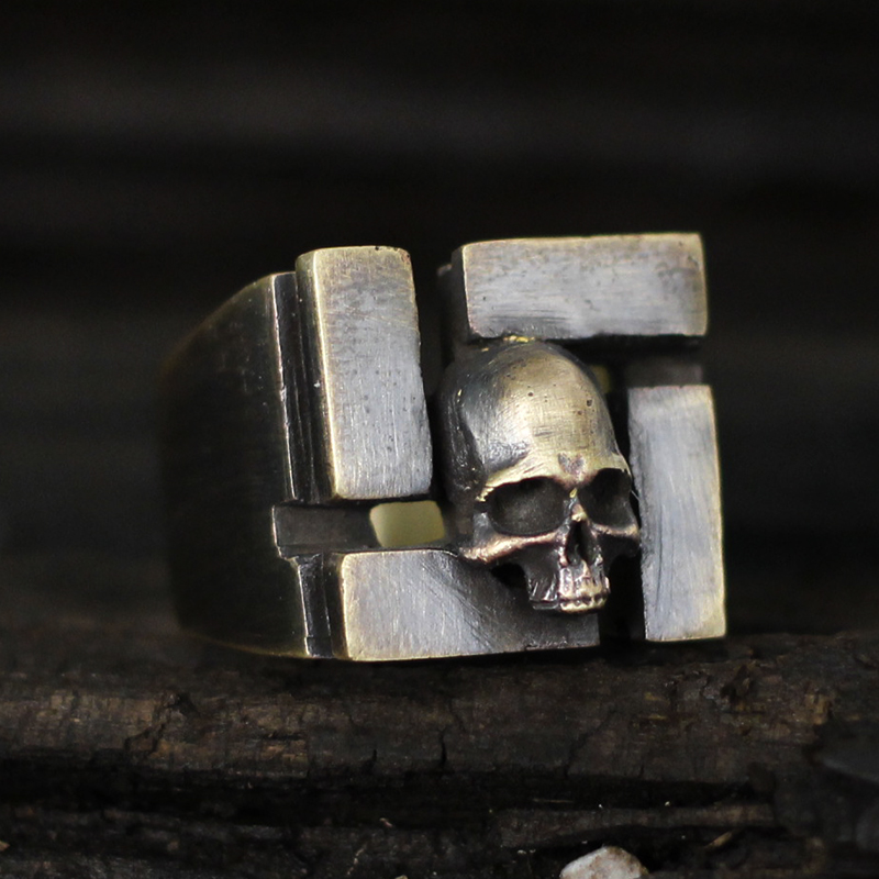 万字戒指厚重原创镶嵌男女佛系信仰骷髅暗黑925纯银黄铜十字架