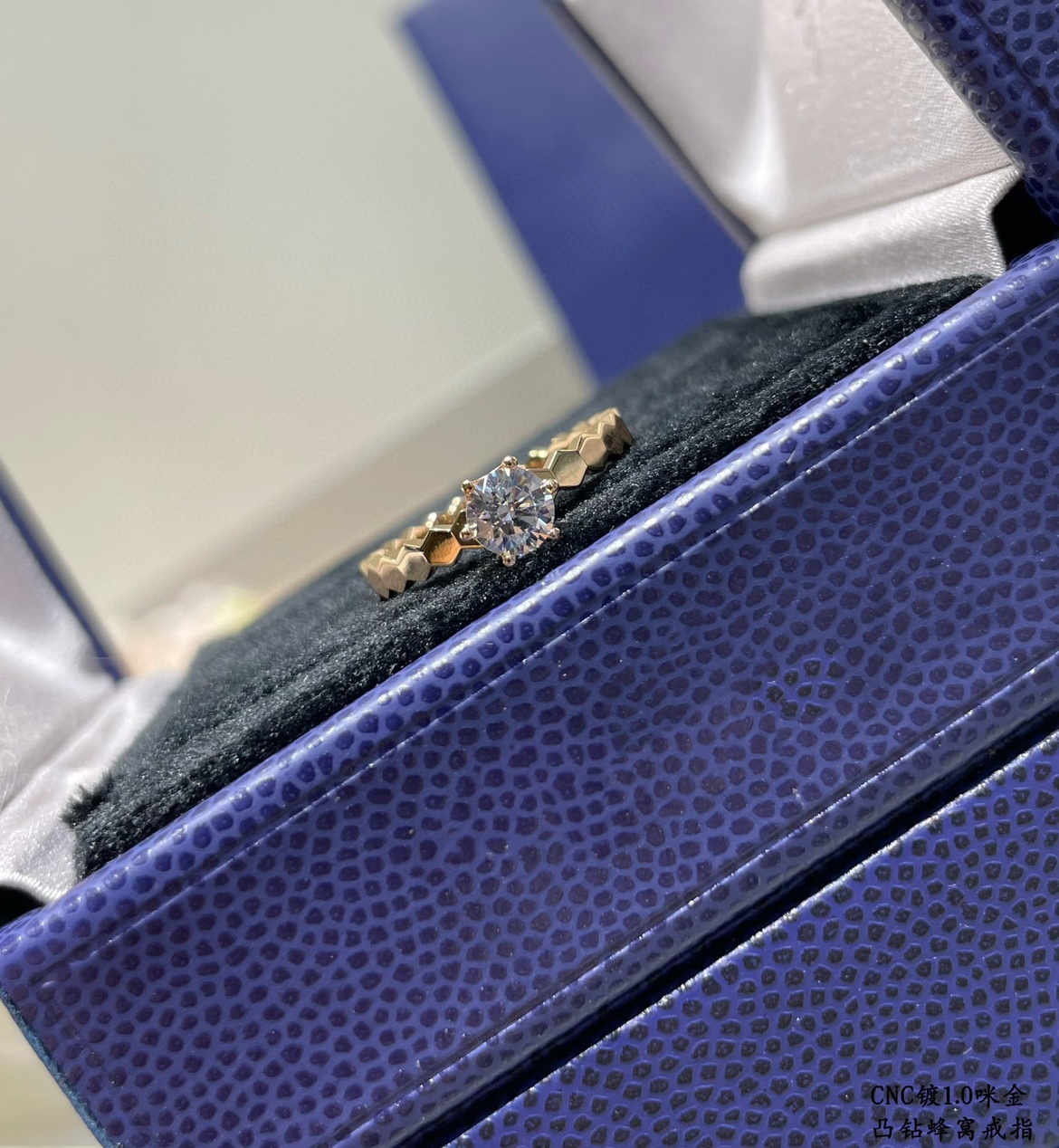 蜂巢戒指女V金镀咪金玫瑰金蜂窝爱巢排钻叠戴指环钻戒2023新款