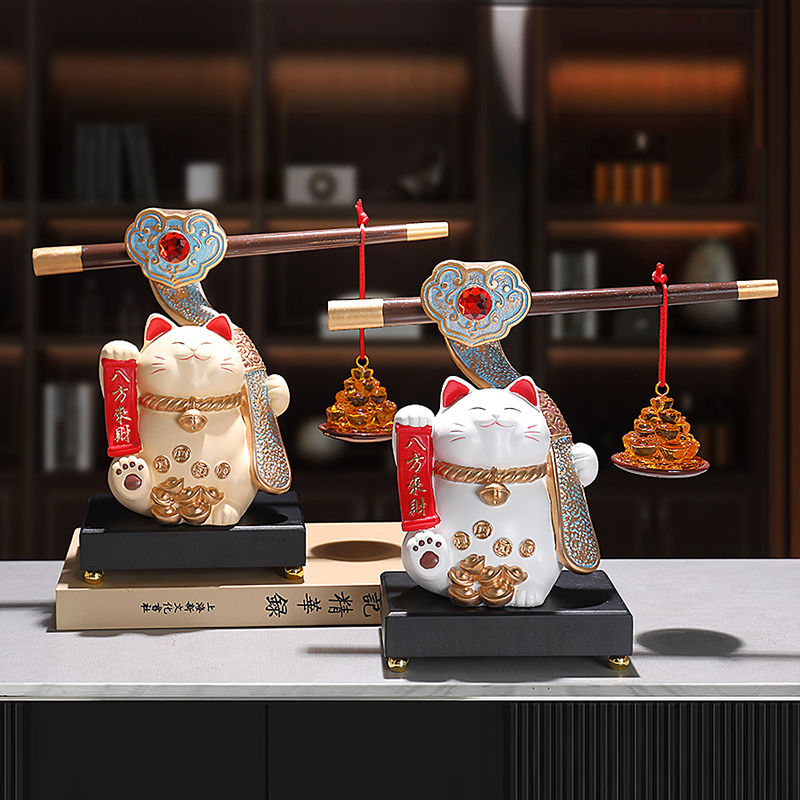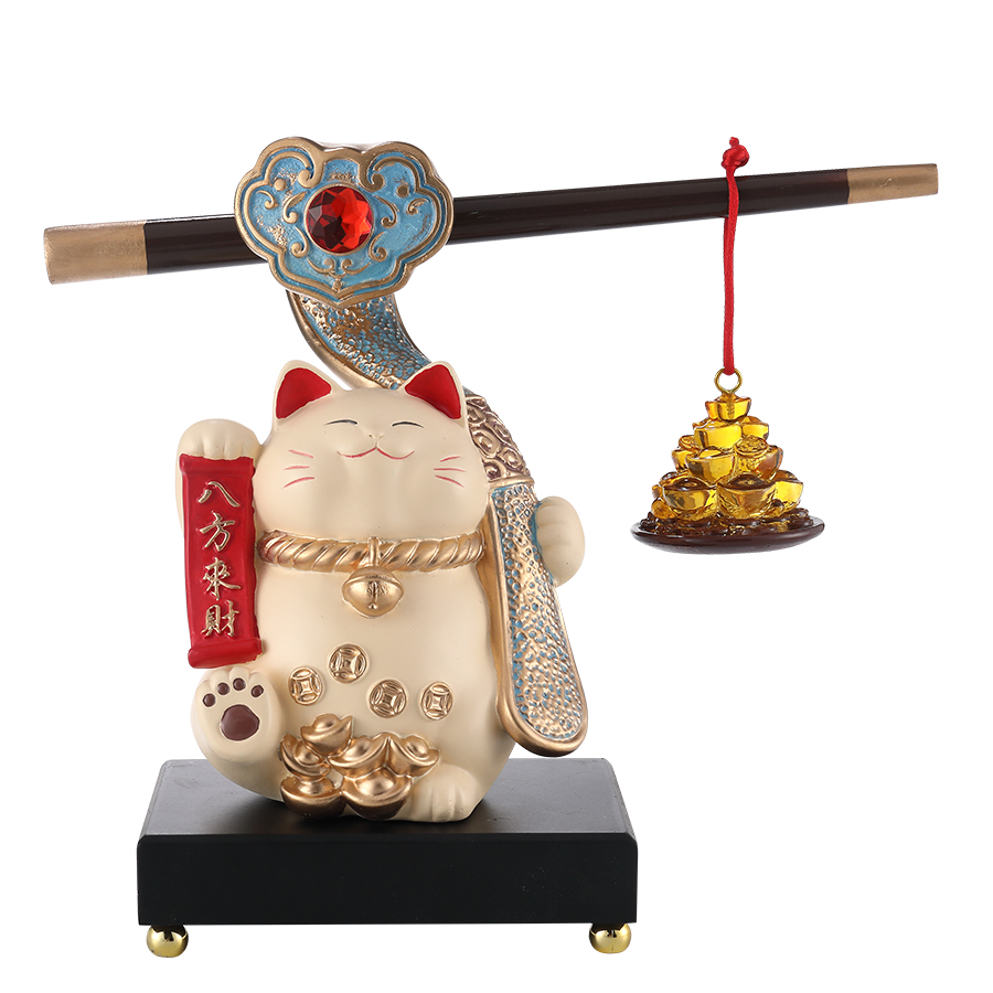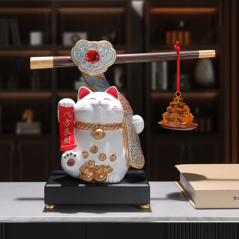 八方来财称心如意招财猫摆件办公室装饰前台店铺搬家乔迁开业礼物