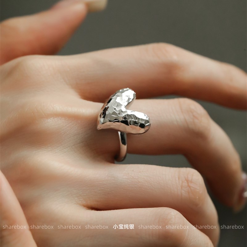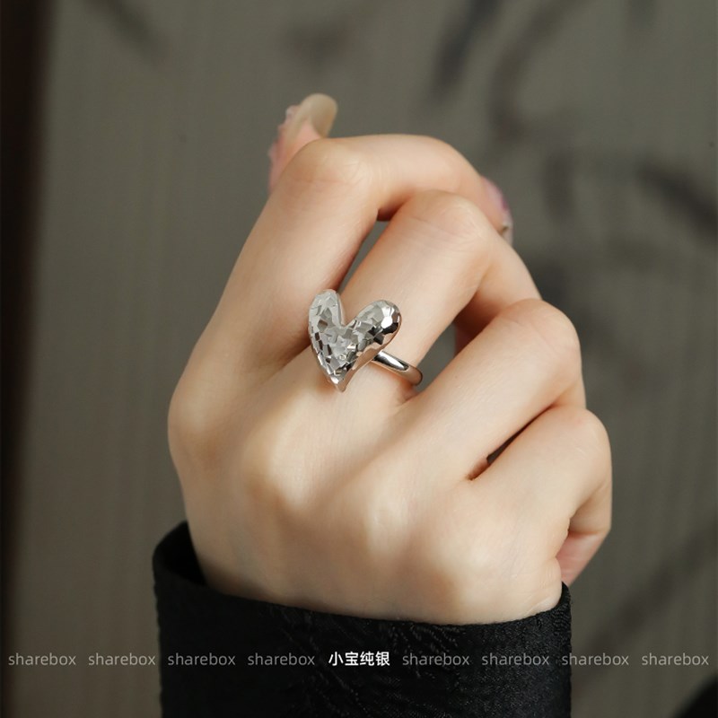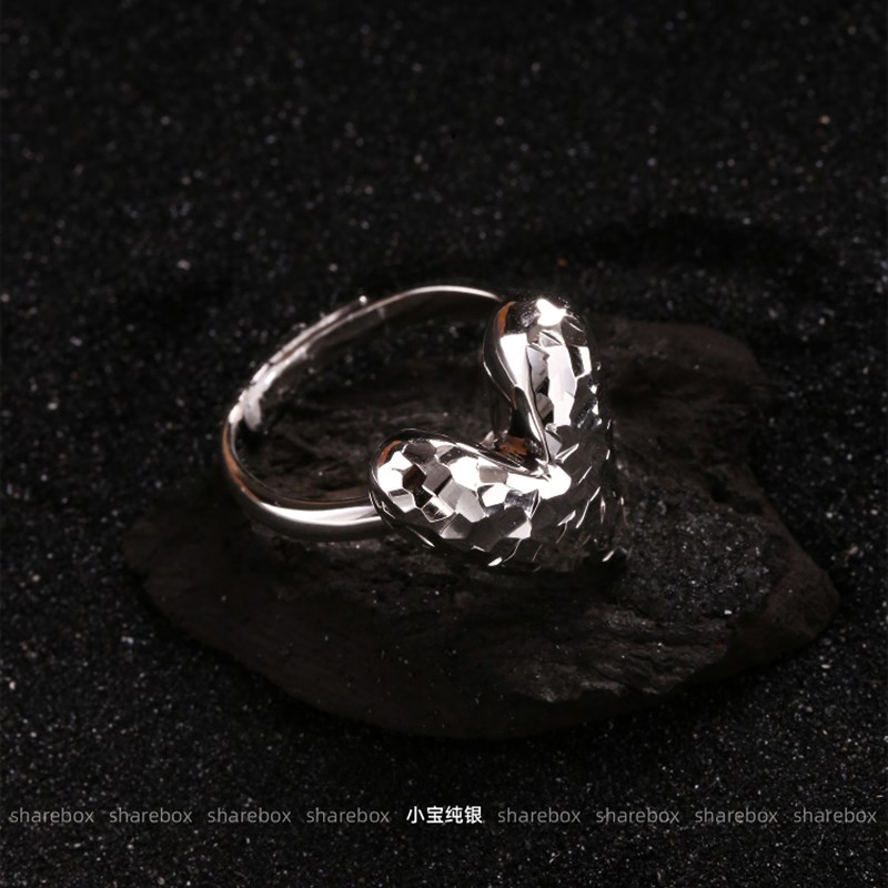 分享盒碎冰eS925银闪闪发光的三维爱情车花鱼鳞心形戒指的妇女