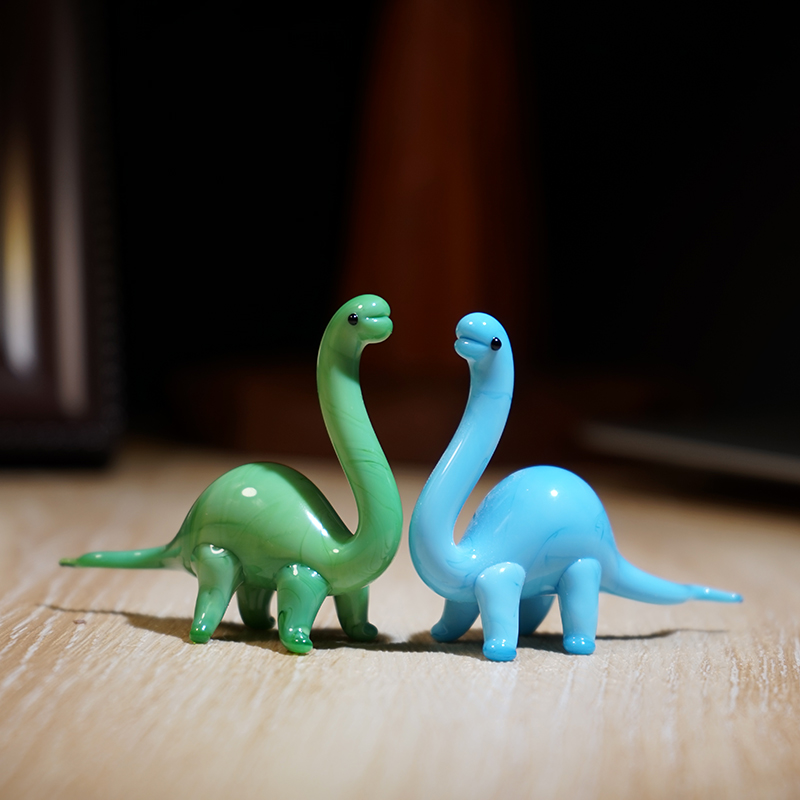 “罗密欧与侏罗纪”手工玻璃小摆件琉璃恐龙电脑桌面汽车载装饰品