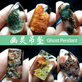 天然水晶原石绿幽灵花幽灵兔毛发平安无事牌方牌挂件吊坠男女情侣
