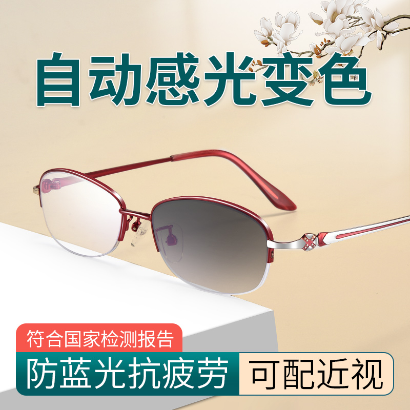 感光变色镜近视眼镜女可配度数防蓝光抗辐射紫外线疲劳护眼睛平光