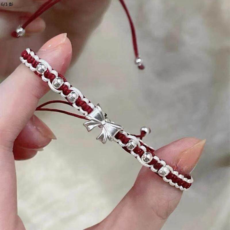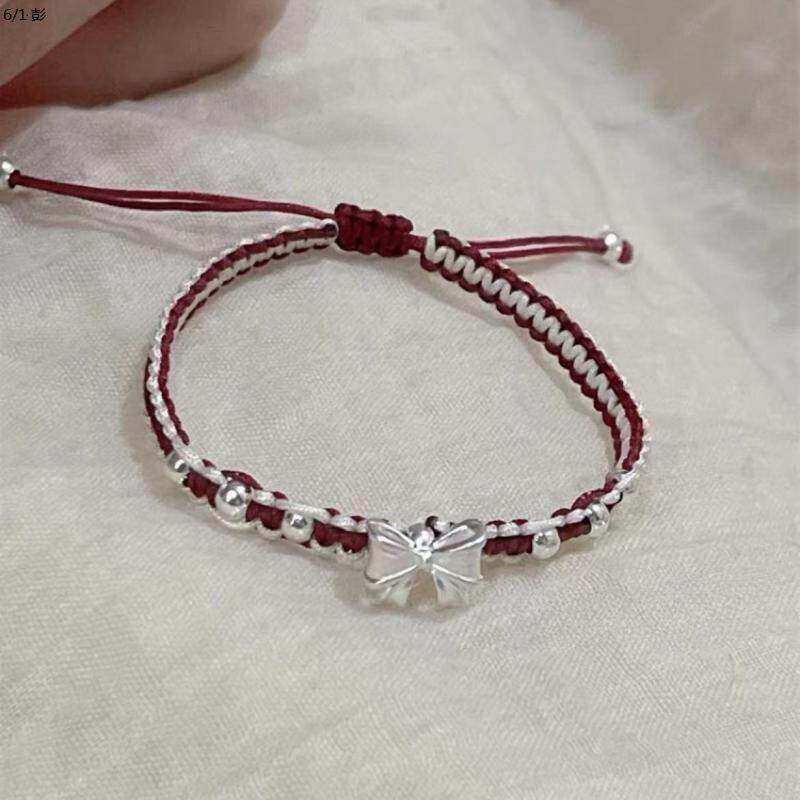 红色蝴蝶结编织手绳百搭新款手链少女心编织手饰在逃公主闺蜜礼物