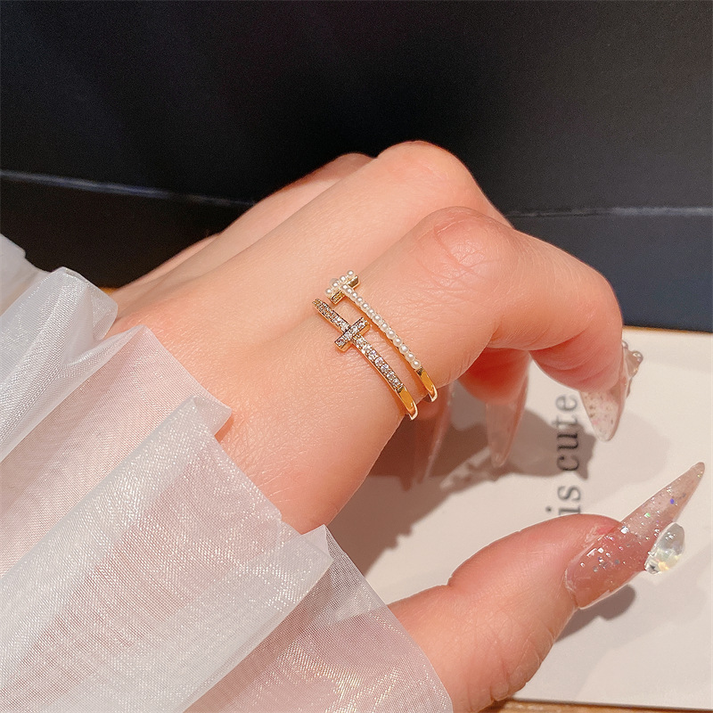 精致锆石双层戒指女轻奢小众设计高级感排钻食指戒开口可调节指环