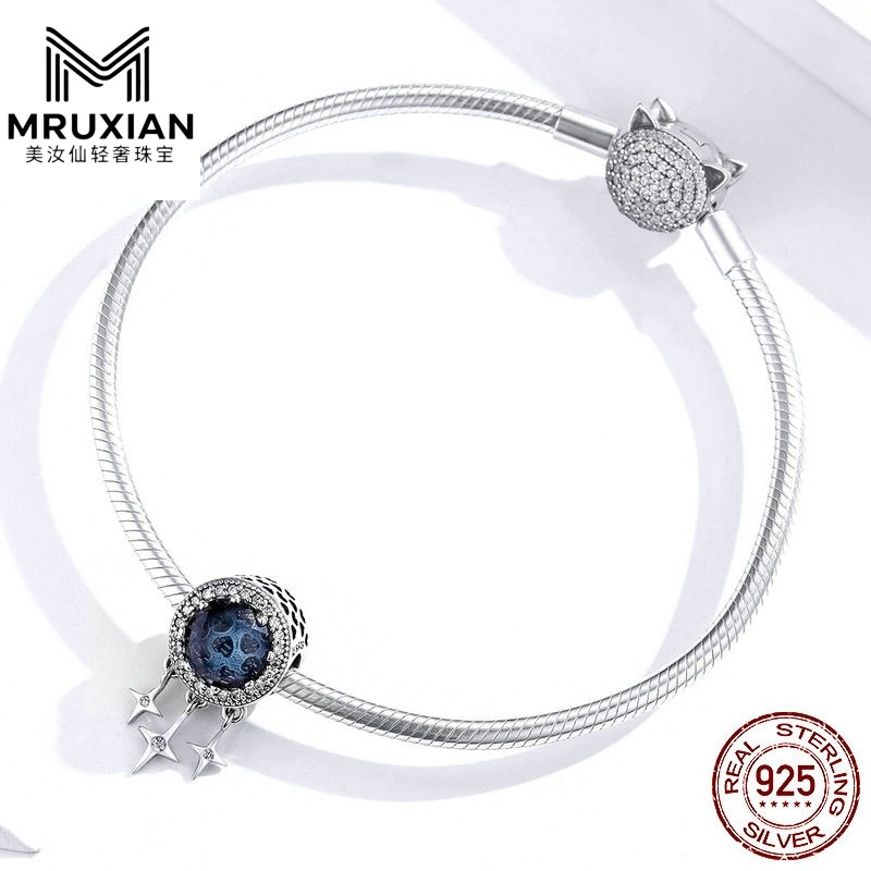 美汝仙 纯银串珠s925diy串饰配件蓝色星星流苏slivercharm时尚