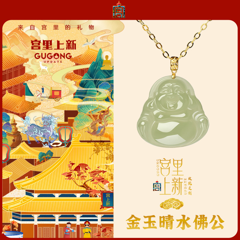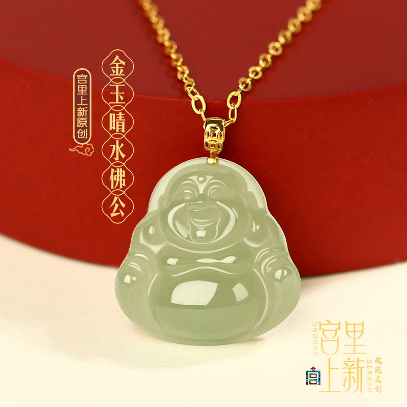 宫里上新18k金镶玉佛吊坠女佛公和田玉坠项链玉坠生日礼物送妈妈