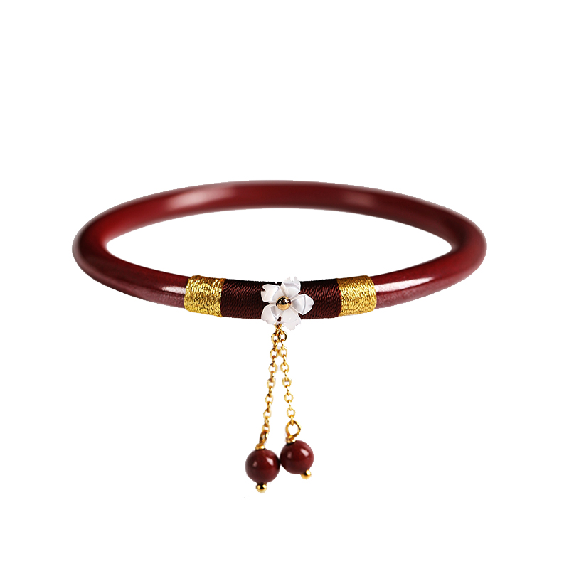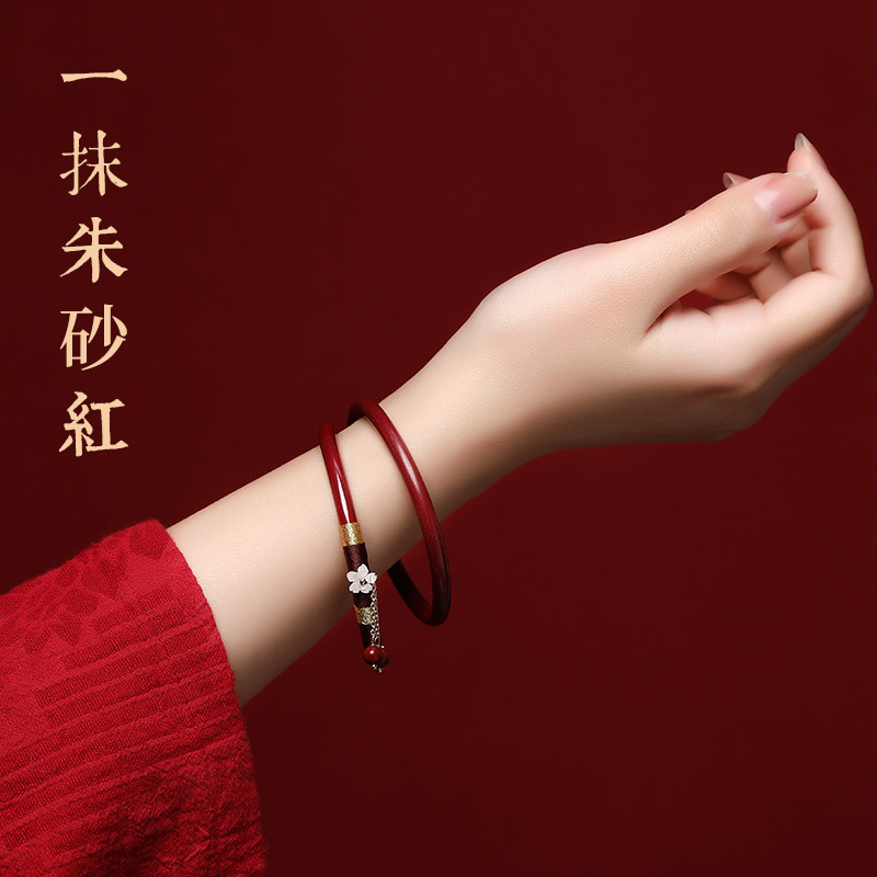 庆祥泰朱砂手镯本命年国风叮当镯一对手串镯子细款原矿女款礼物