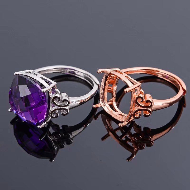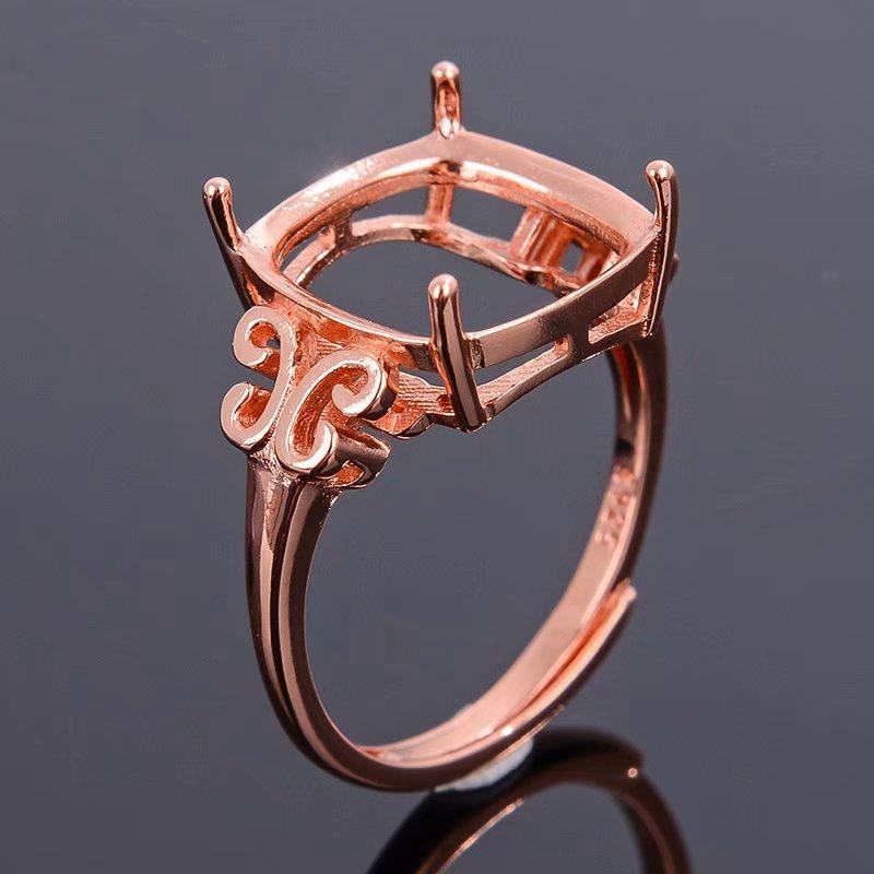 精工时尚戒托空托s925银镀金肥正方12mm戒指空托女开口日韩气质
